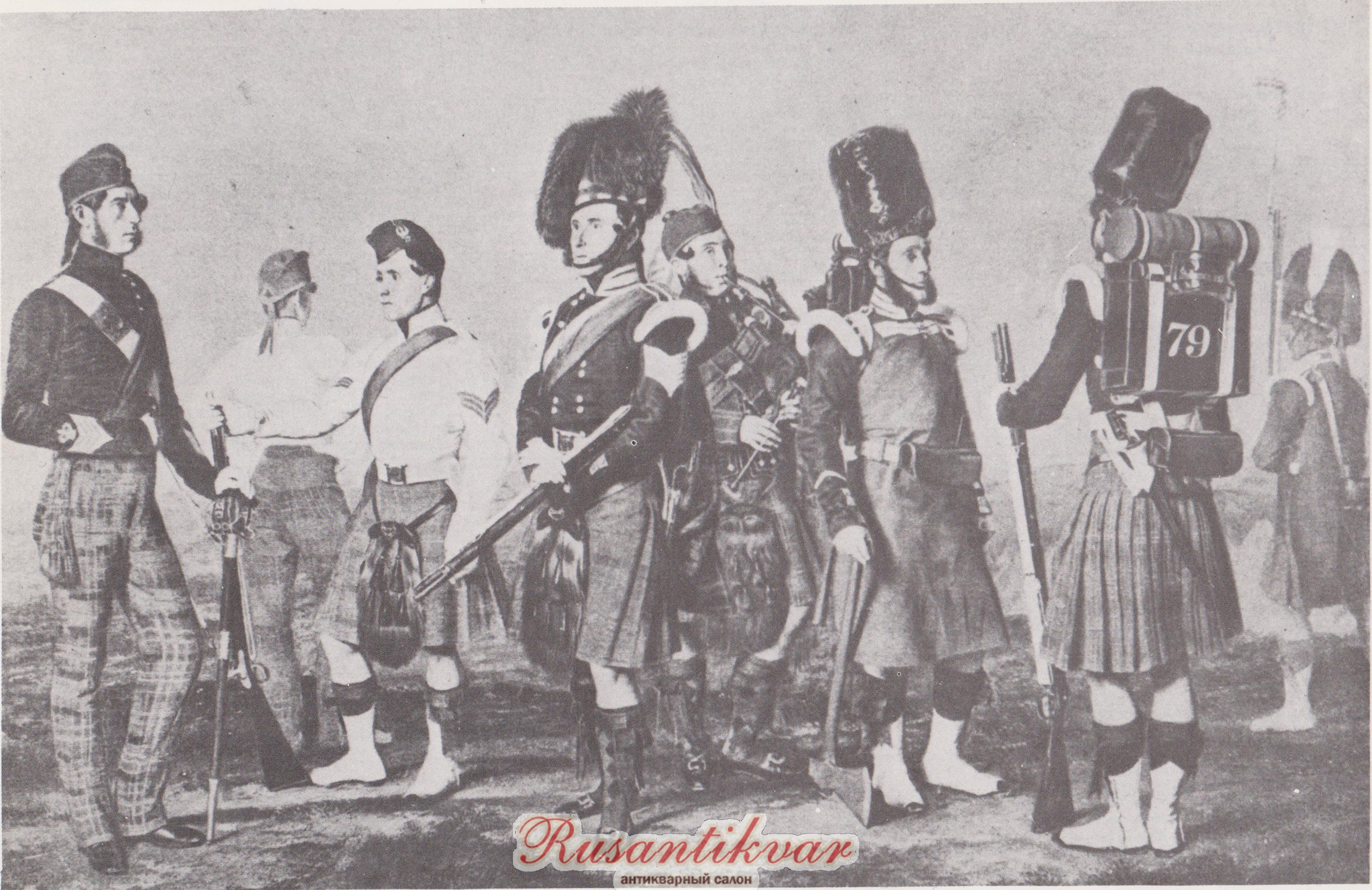 Группа военнослужащих 79-го горного полка(Камерон Хайлендерс) на зарисовке сделанной в годы Крымской войны: