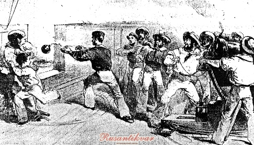 Чарльз Дэвис Лукас ( ирландец по происхождению ) , выбрасывает за борт бомбу , которая упала на палубу HMS Hecla во время обстрела крепости Бомарзунд в в июне 1854. Получил медаль Виктории за этот подвиг.