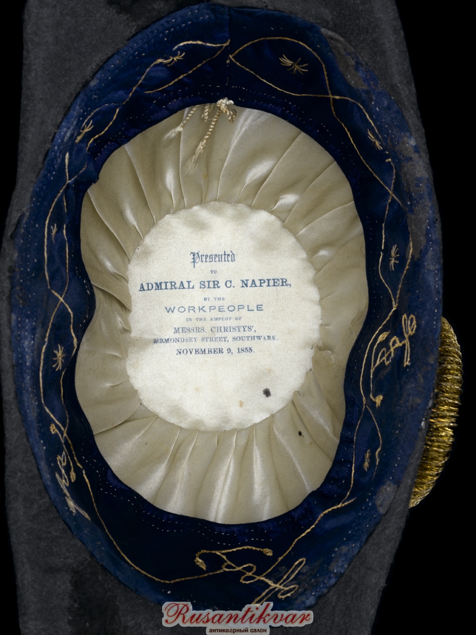 Двууголка образца 1843 вице-адмирала Чарльза Непира, командовавшего в 1855 г. союзной эскадрой на Балтийском театре военных действий, из коллекции Музея Королевского военно-морского флота
