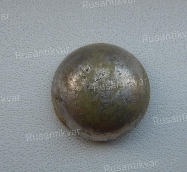 Пуговица оловянная гусарская нижних чинов. Была залита гипсом и закрыта сзади оловянной крышечкой (которая развалилась при выемке из земли). Найдена на эполетке давно.