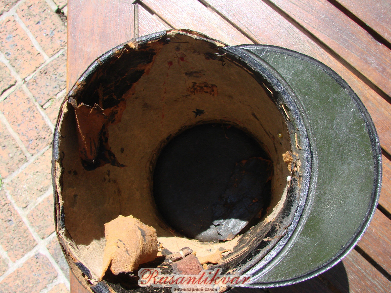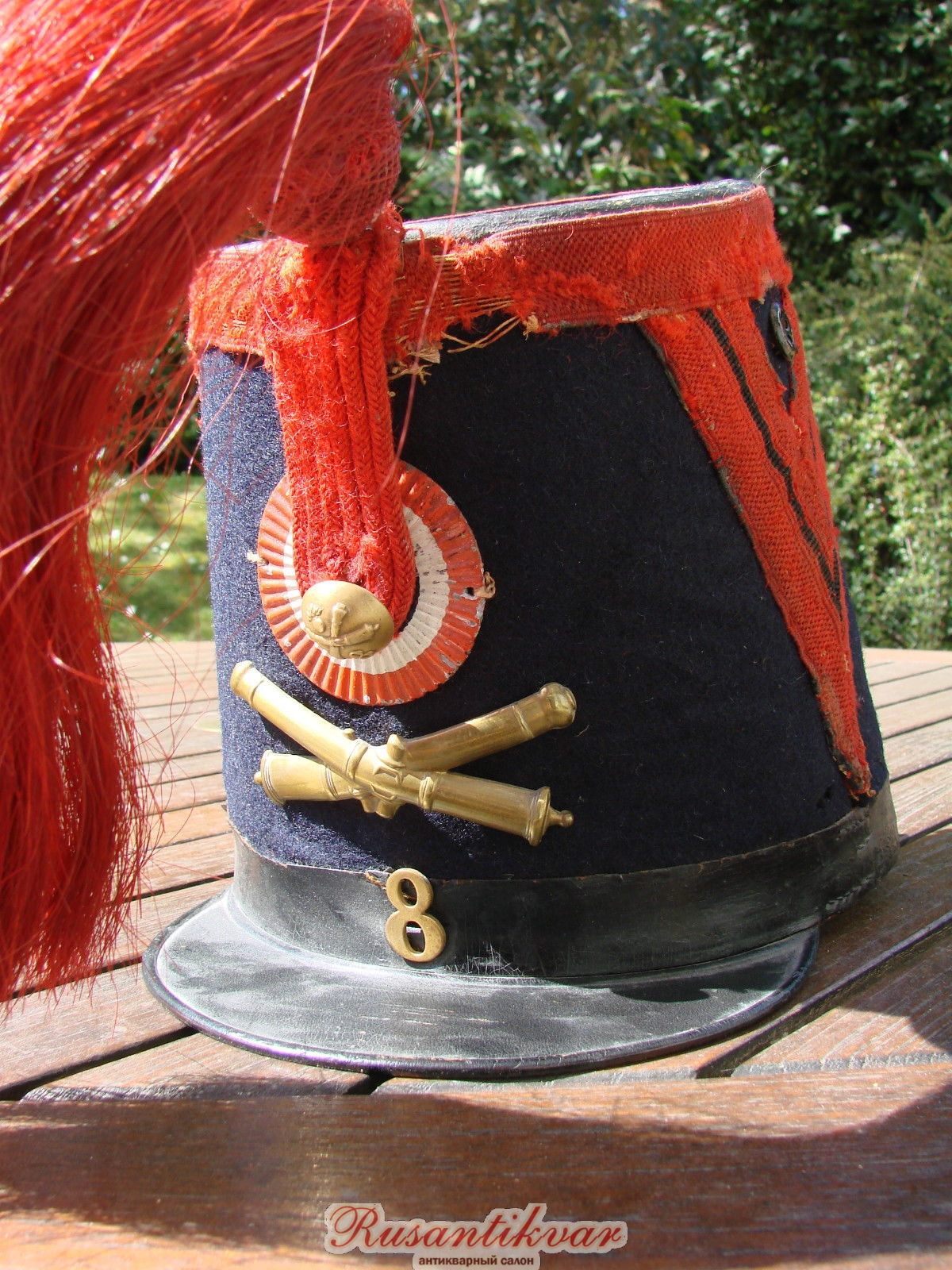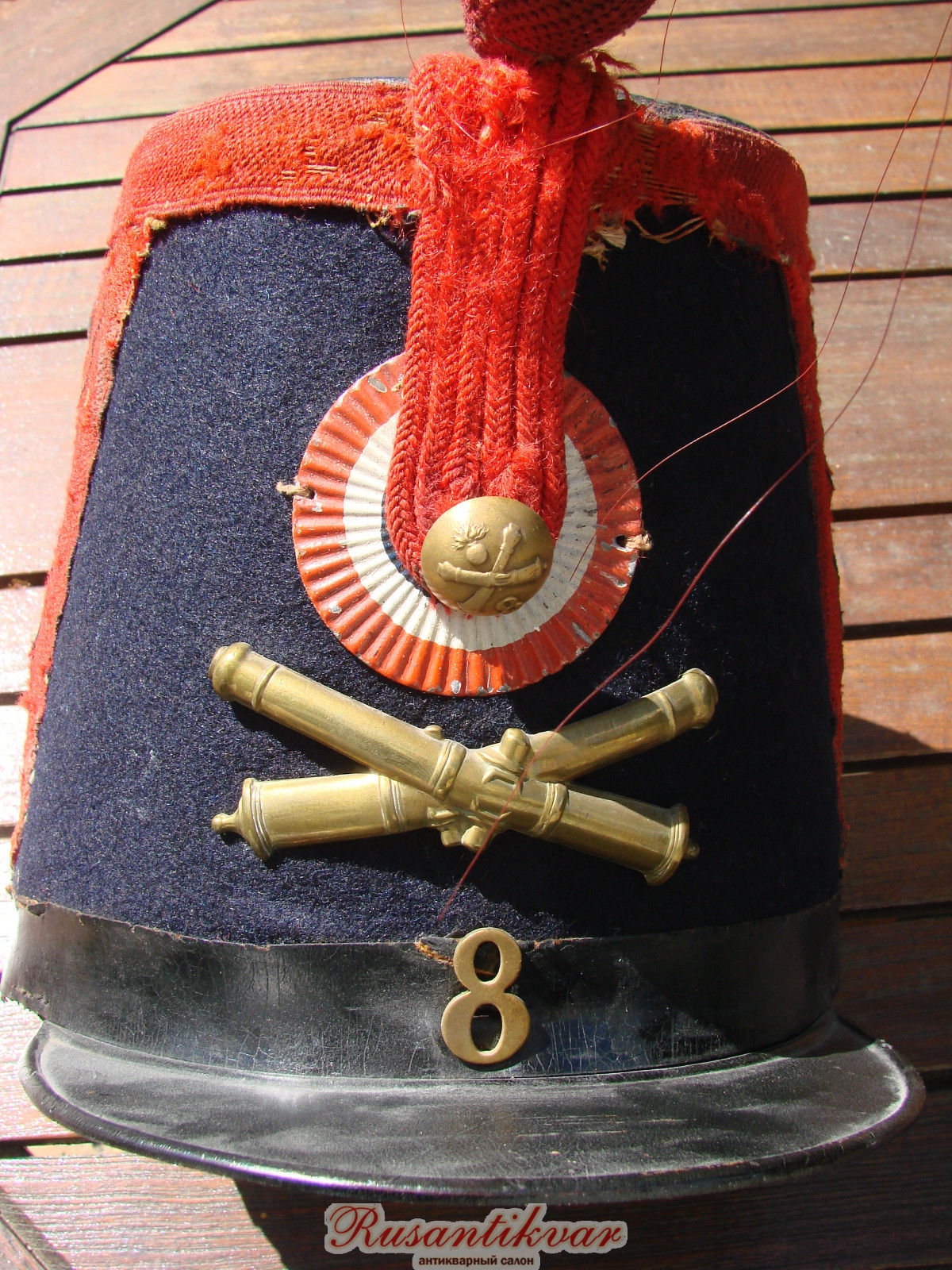 Кивер нижнего чина 8-го полка армейской артиллерии образца 1844 г. Явная солянка. Фото из сети.