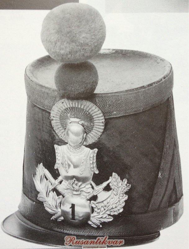 Фото кивера нижнего чина 1-го инженерного полка (из книги К. Блондо "Plaques de shakos, de shapkas, de bonnets a polis...")