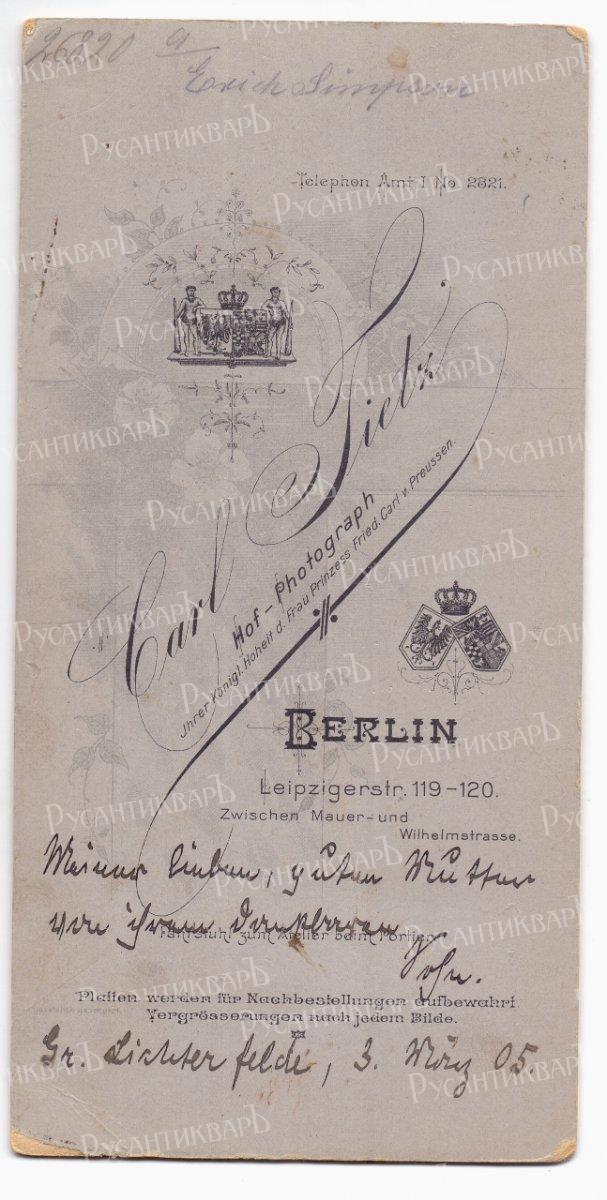 Кабинет-фото офицера с медалью 100 лет кайзеру Вильгельму Первому 1897.