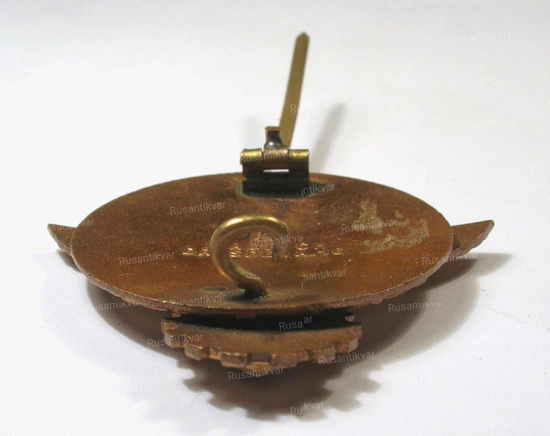 Учрежден 1 мая 1934 г. Германия, город Люденшайд, фабрика "Steinhauer & Luck Ludenscheid" ( Штайнхауэр и Люк), 1934 - 1945 гг. На оборотной стороне выбито "RZM" (патентное клеймо ИМПЕРСКОГО КОНТРОЛЬНОГО ВЕДОМСТВА НСДАП) и "M 1/63", на стреле выбит номер награждения "114.432". Сплав цветных металлов, 17.35 гр. Размеры 51 х 29 мм.