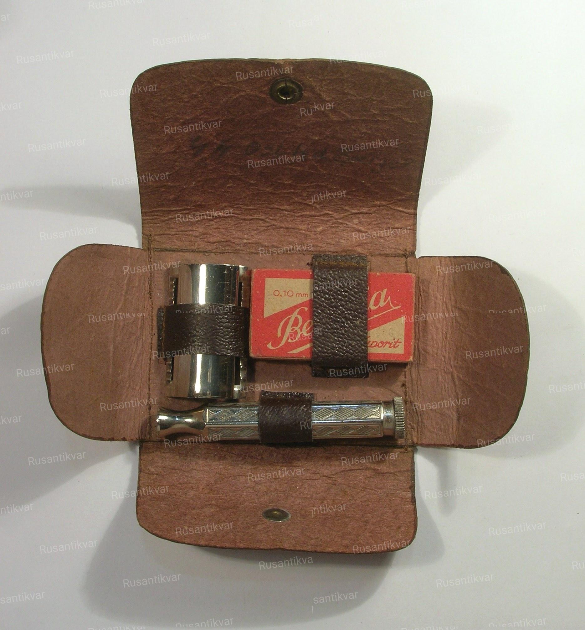 Станок бритвенный, TRUMPF, бакелитовый, в походном варианте, Рейх, использовались повсеместно на фронте. Отличное функциональное состояние. На кнопке клеймо PRYM .