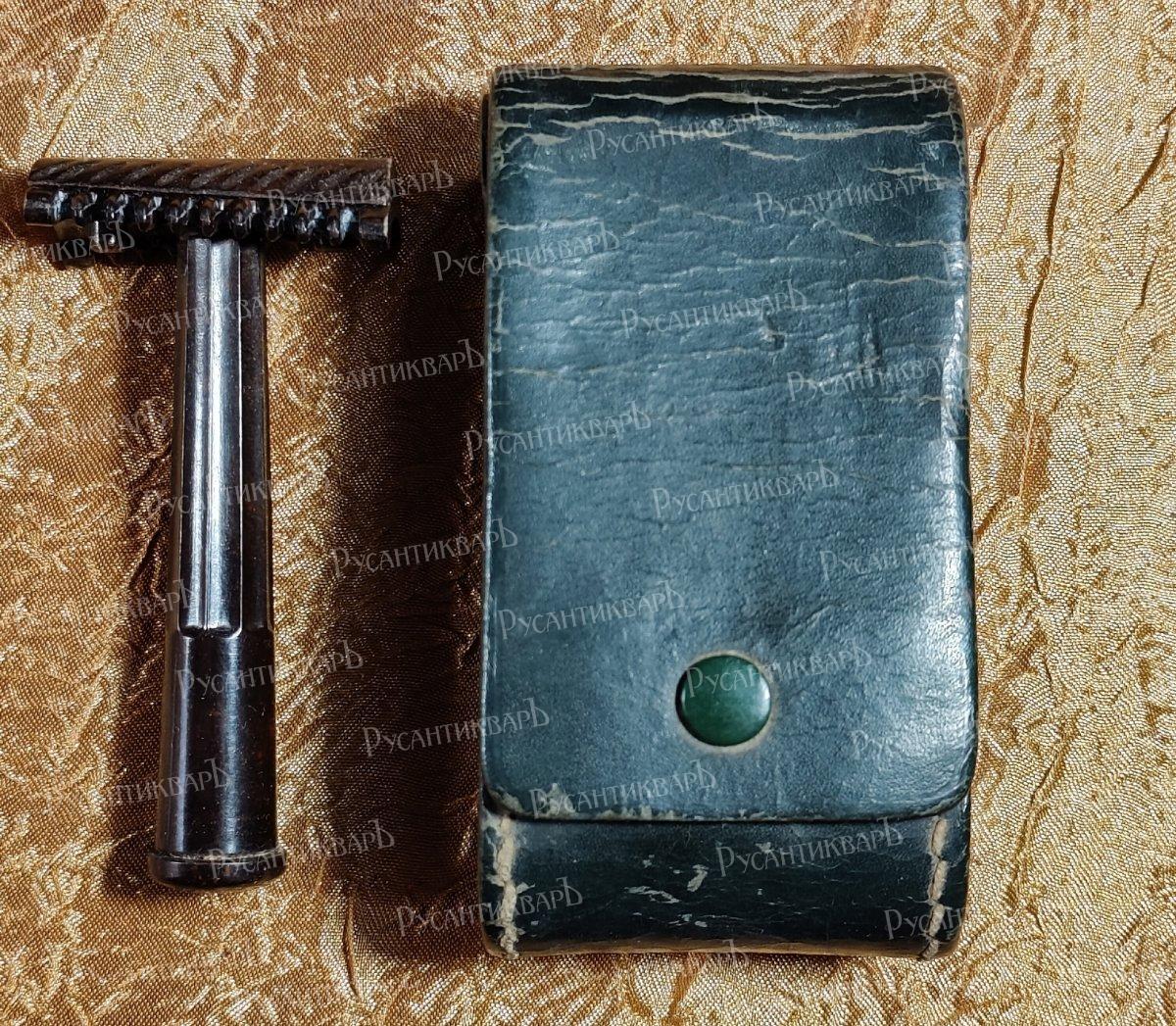 Станок бритвенный, TRUMPF, бакелитовый, в походном варианте, Рейх, использовались повсеместно на фронте. Отличное функциональное состояние. На кнопке клеймо PRYM .