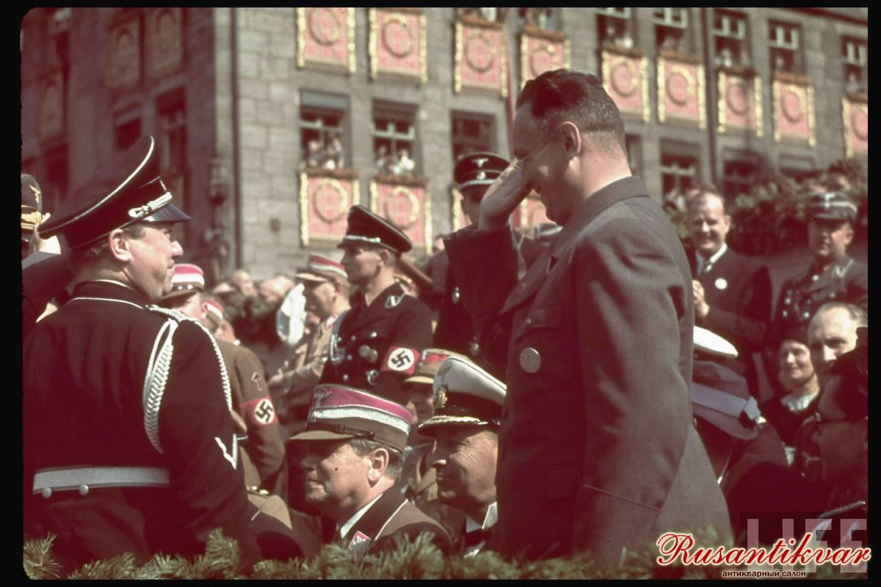 Полиция и SS. На переднем плане справа- ГЕНРИХ ГИМЛЕР -за ним слева- ГЕЙНДРИХ.