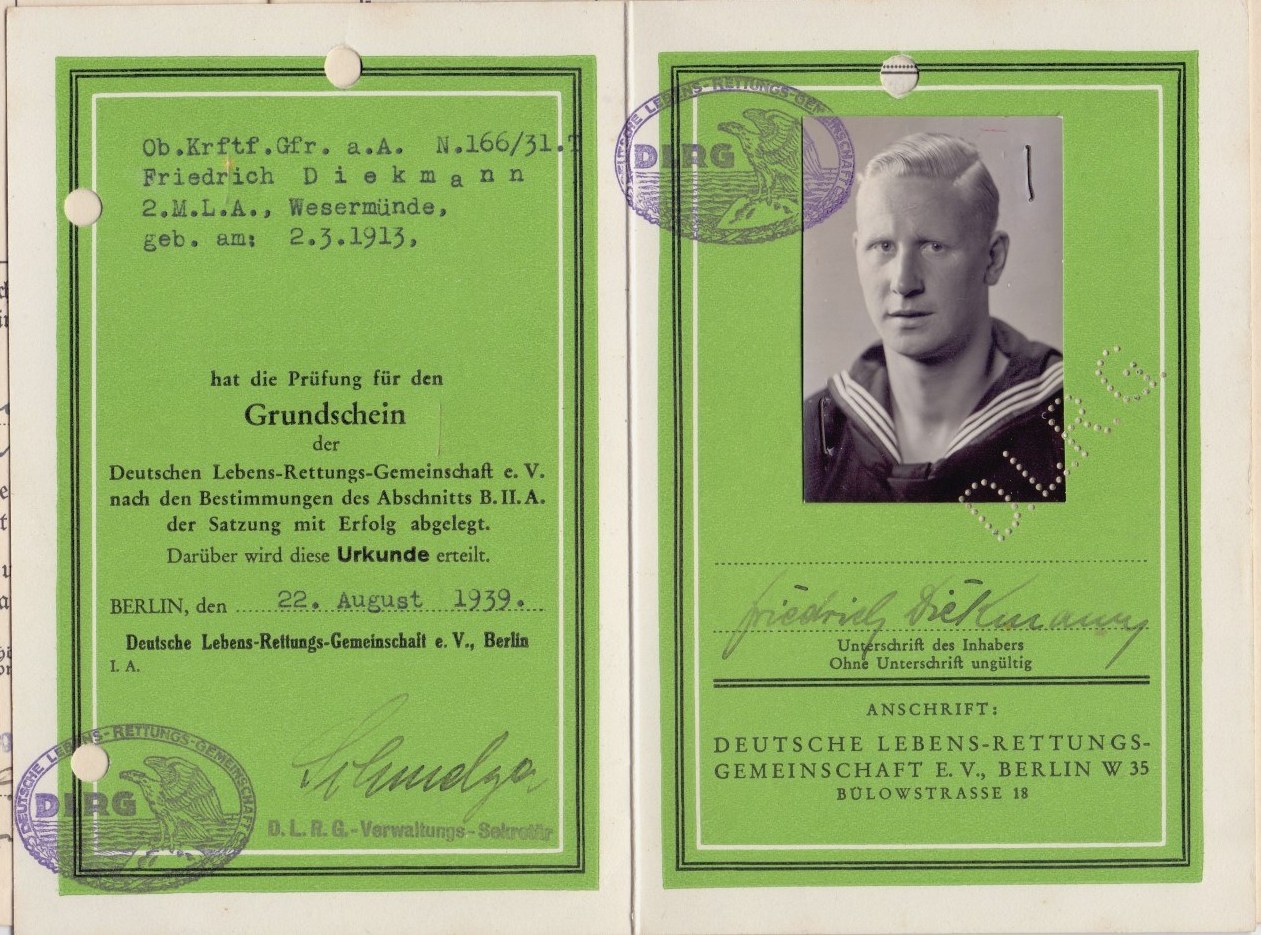 УДОСТОВЕРЕНИЕ D.R.L.G. на моряка КРИГСМАРИНЕ.