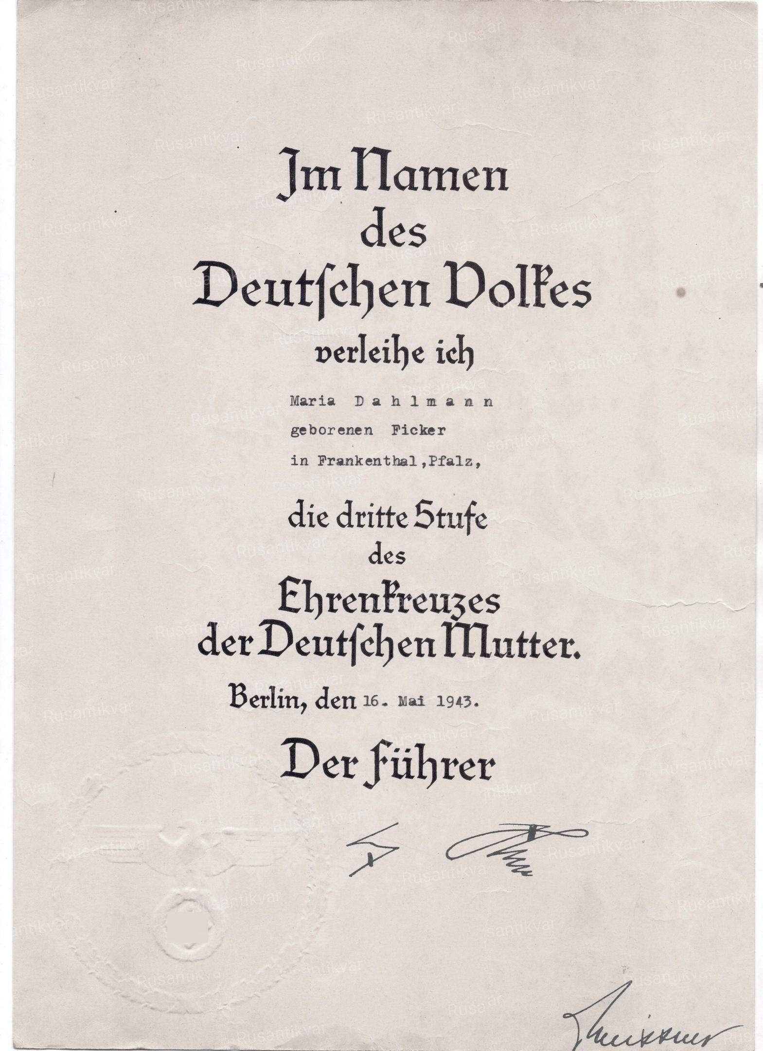 НАГРАДНОЙ :Крест немецкой матери в бронзе .