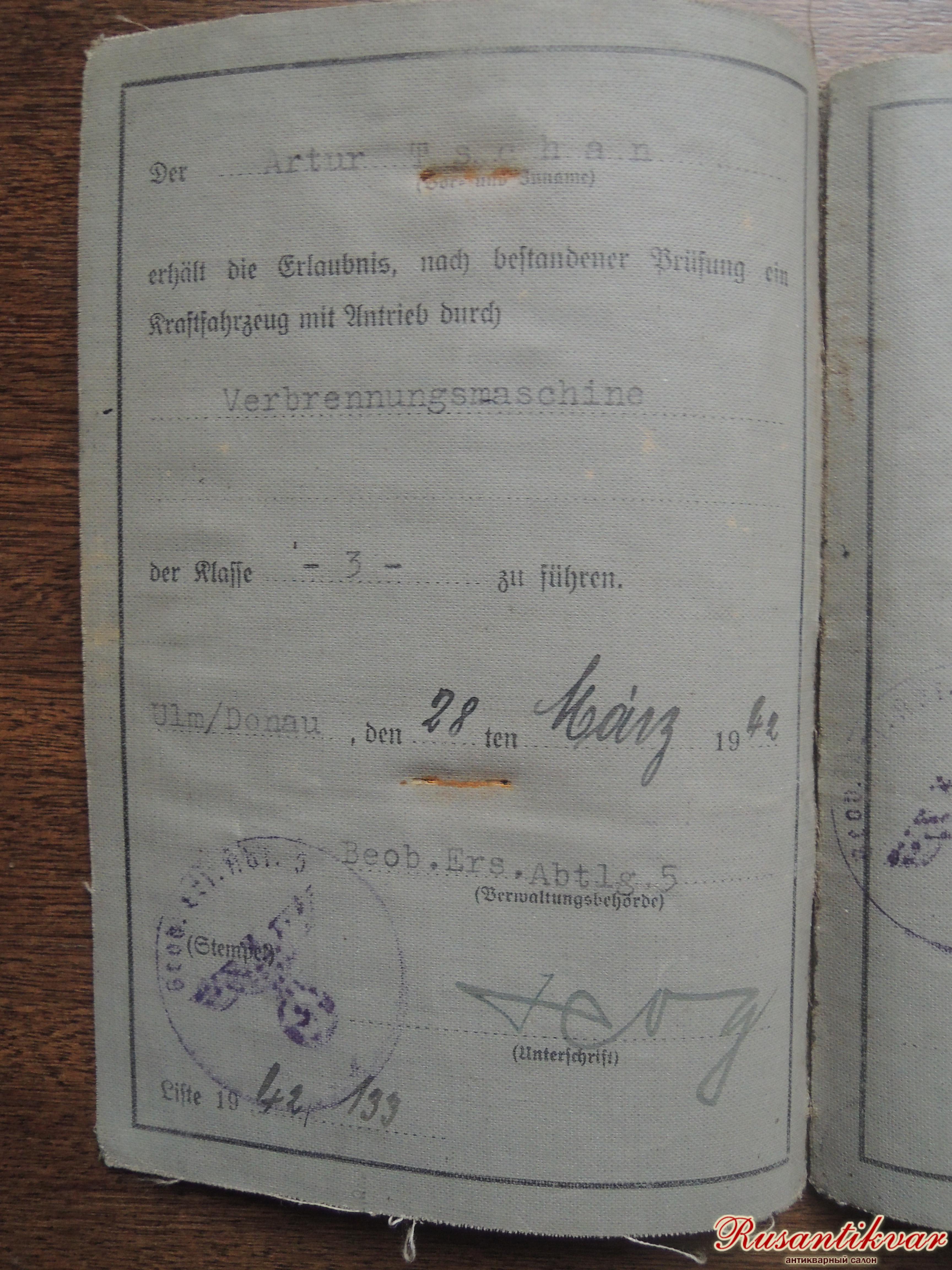 водительские права вермахт