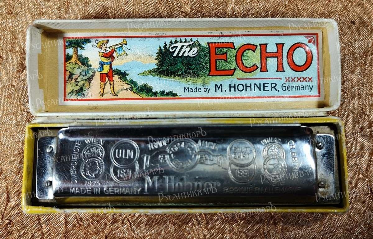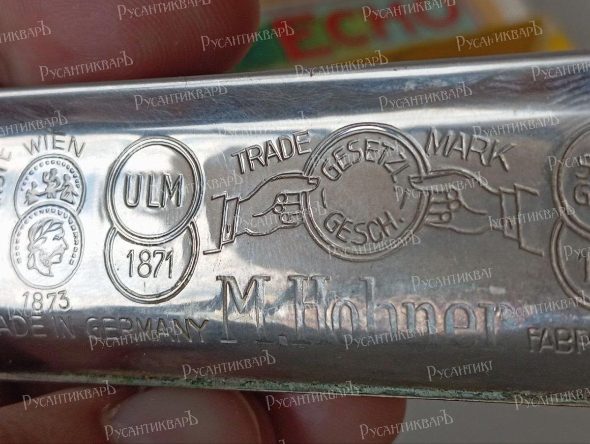 Немецкая губная гармошка, довоенная, еще со звездой. Альпийское тремоло, изготовленная самой известной фирмой "M.Hohner", ECHO, гармоники этой фирмы как раз в основном использовались на фронте. Двустороння, 2 тональности (до и соль мажор).