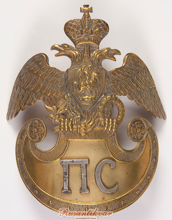 Указом Императора от 22.06.1845 повелено чинам Пограничной стражи иметь кивер, на котором должен быть размещен "щитъ изъ желтой меди съ гербом и накладными белыми литерами П.С. (Пограничная Стража)".