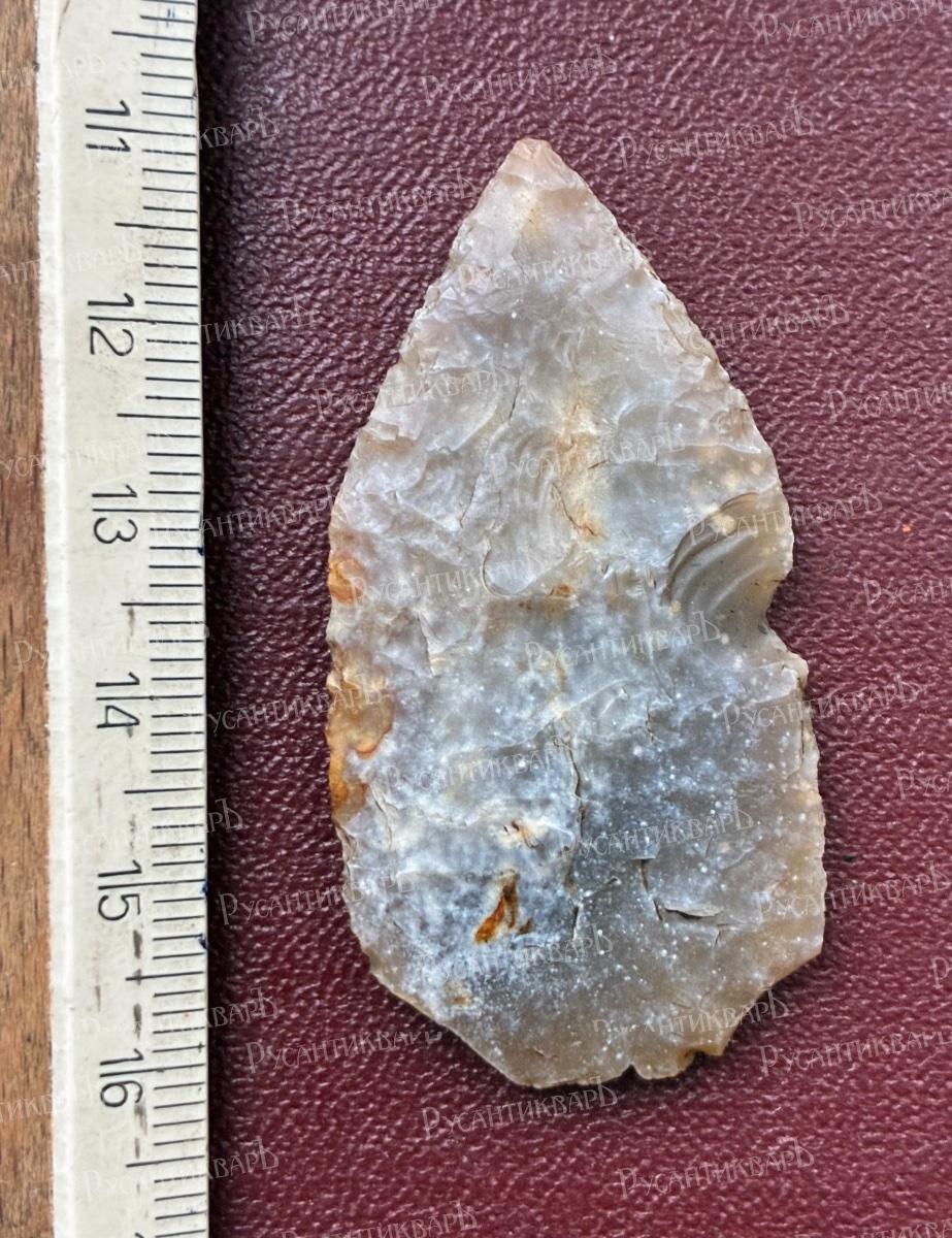 Кремневый наконечник стрелы Майкопской культуры бронзового века.Находка 1981 года на берегу Краснодарского водохранилища у поселка Джиджихабль.