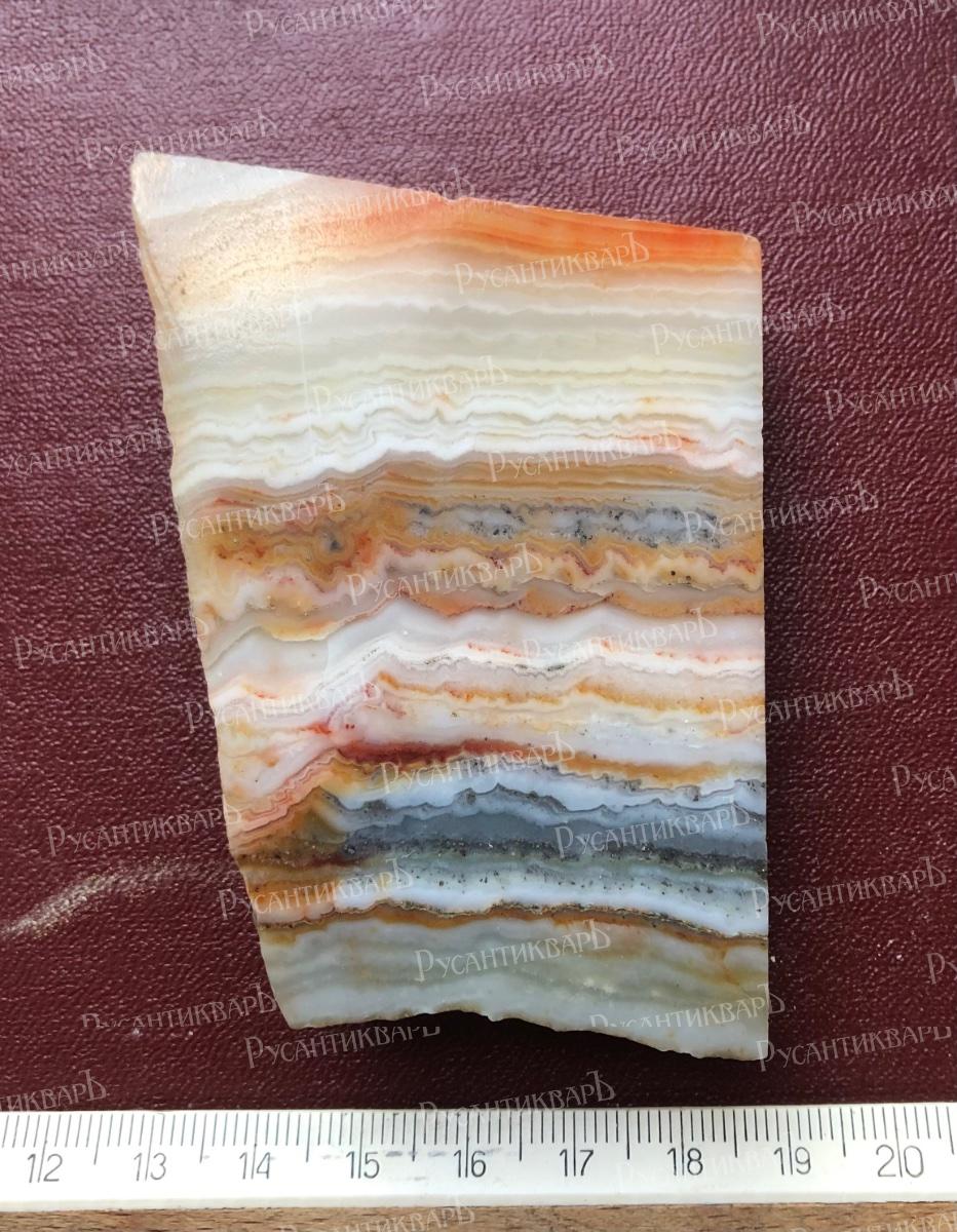 Переливт.Урал,Свердловская область село Шайтанка.Переливт — мелкокристаллический диккит-кварцевый агрегат, имеющий слоистое строение. По внешнему виду сильно напоминает агат, но тем не менее, отличается от него. Агат образован слоями халцедона, имеющего волокнистую структуру, и имеет закономерное строение как послойно отлагавшийся целостный минеральный агрегат. Переливт имеет мелкокристаллическую структуру и поэтому не может быть перекрашен теми же методами, что агат.
