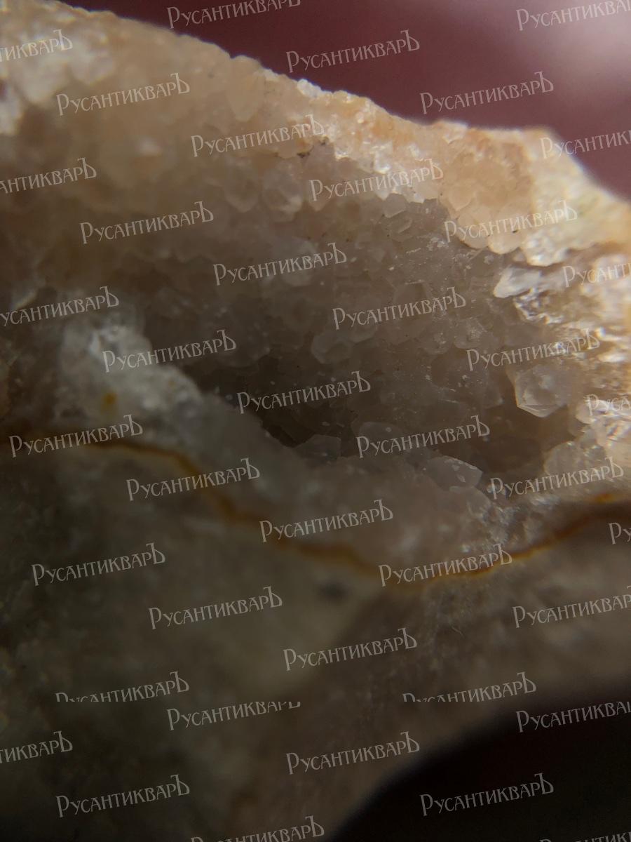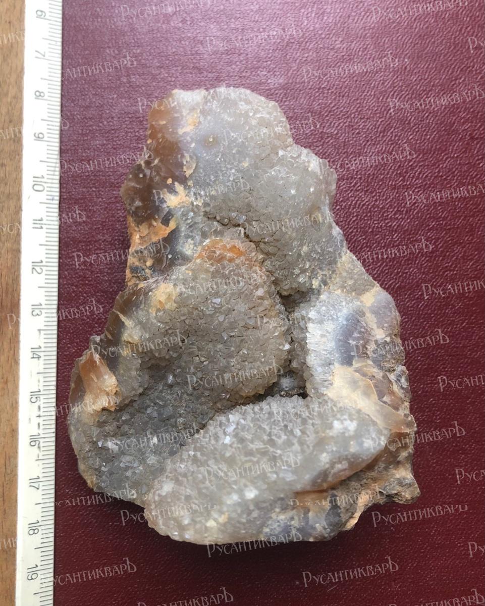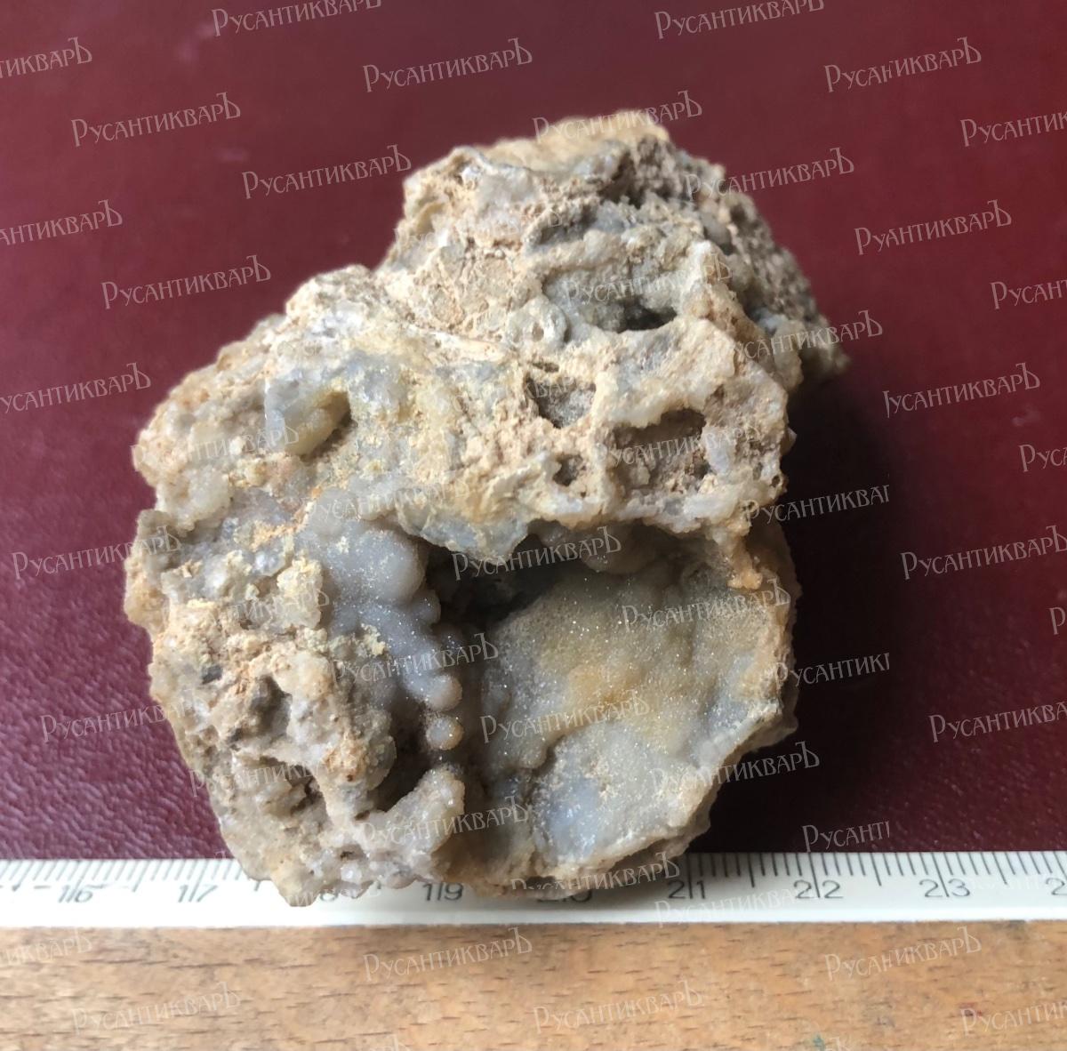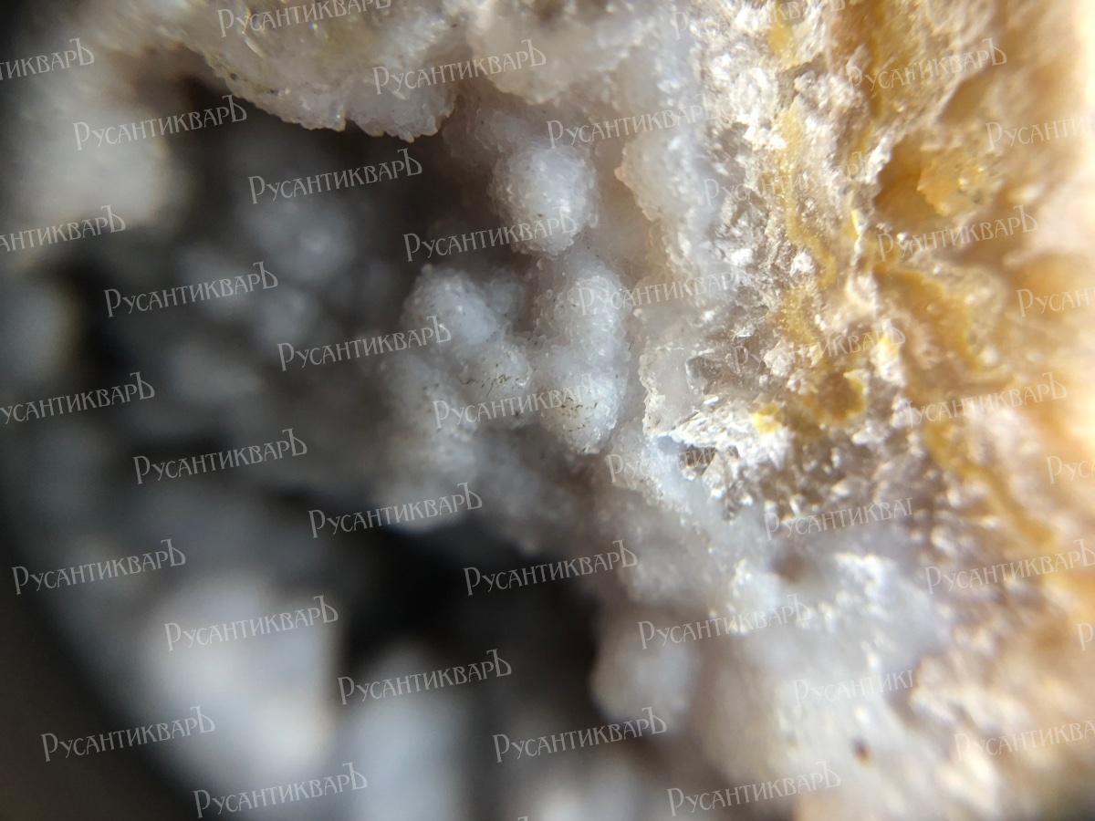 Натечный халцедон с мелкими кристаллами кварца.Московская область город Верея.