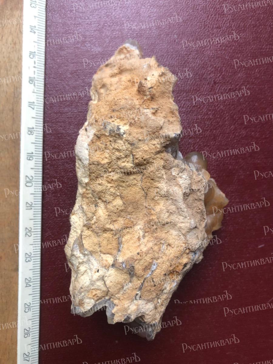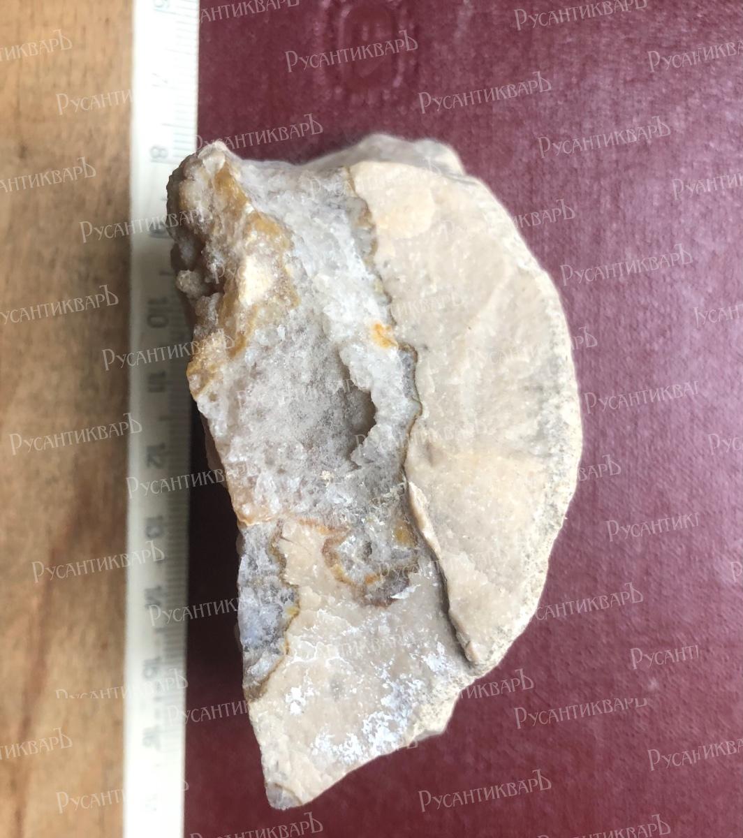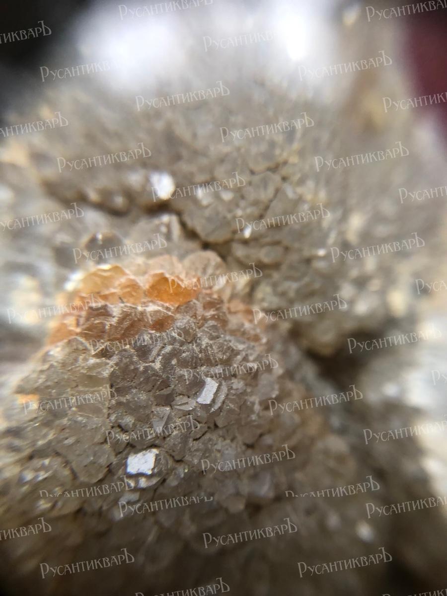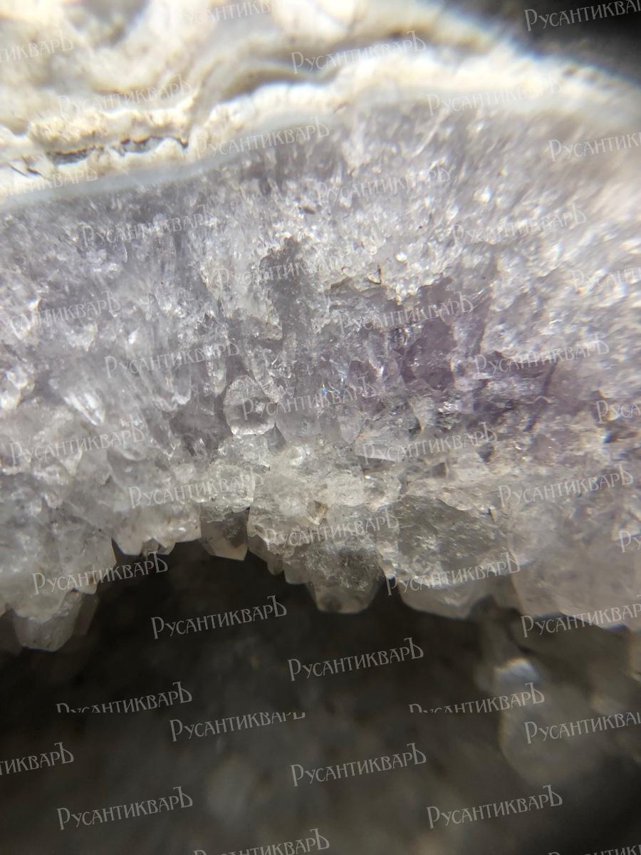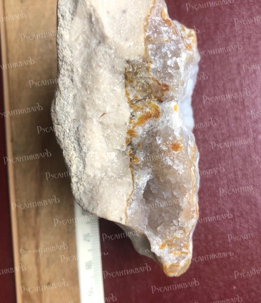 Натечный халцедон с мелкими кристаллами кварца.Московская область город Верея.