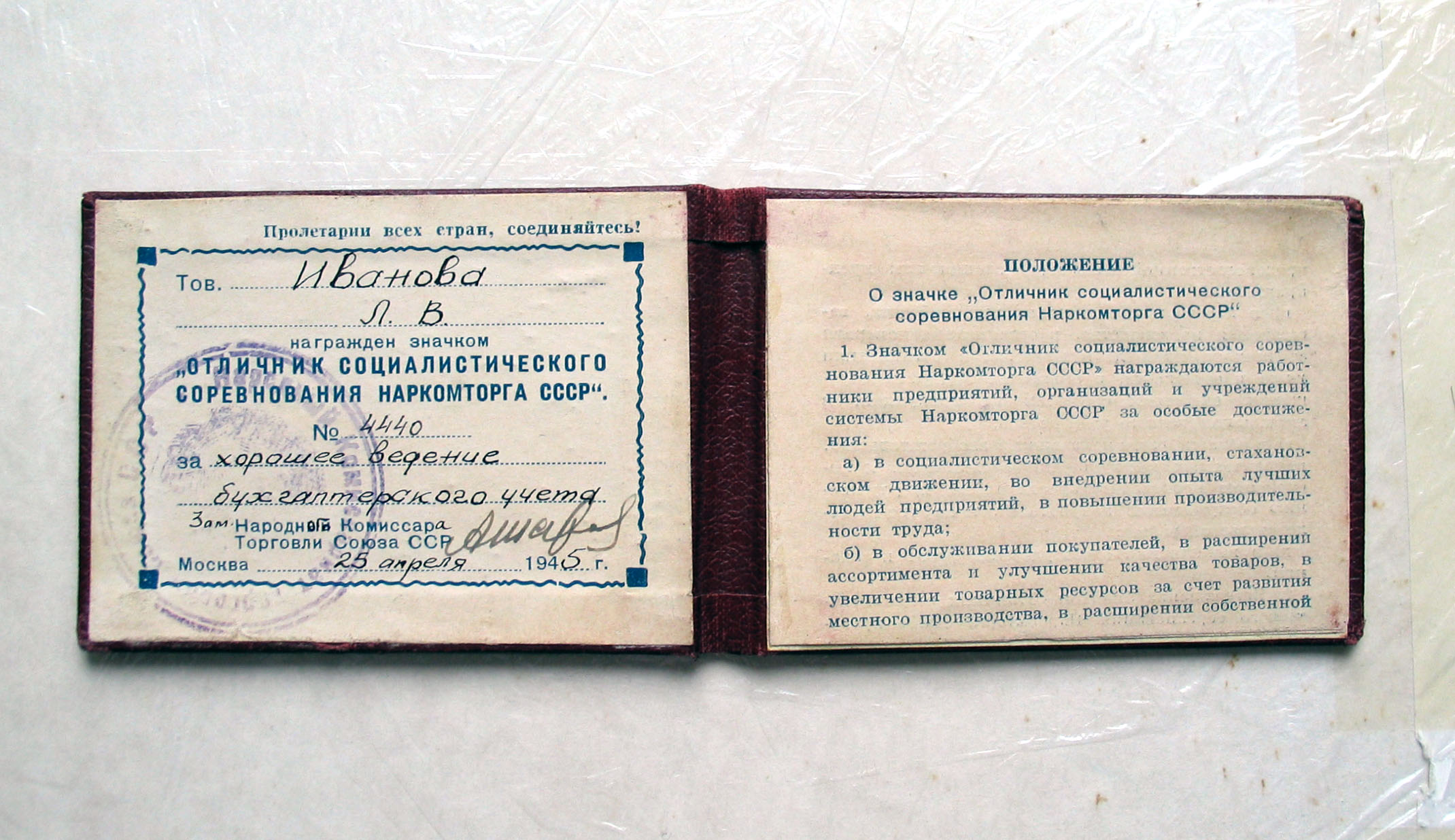 Re: Удостоверение к значку "Отличник соц.соревнования Наркомторга СССР"