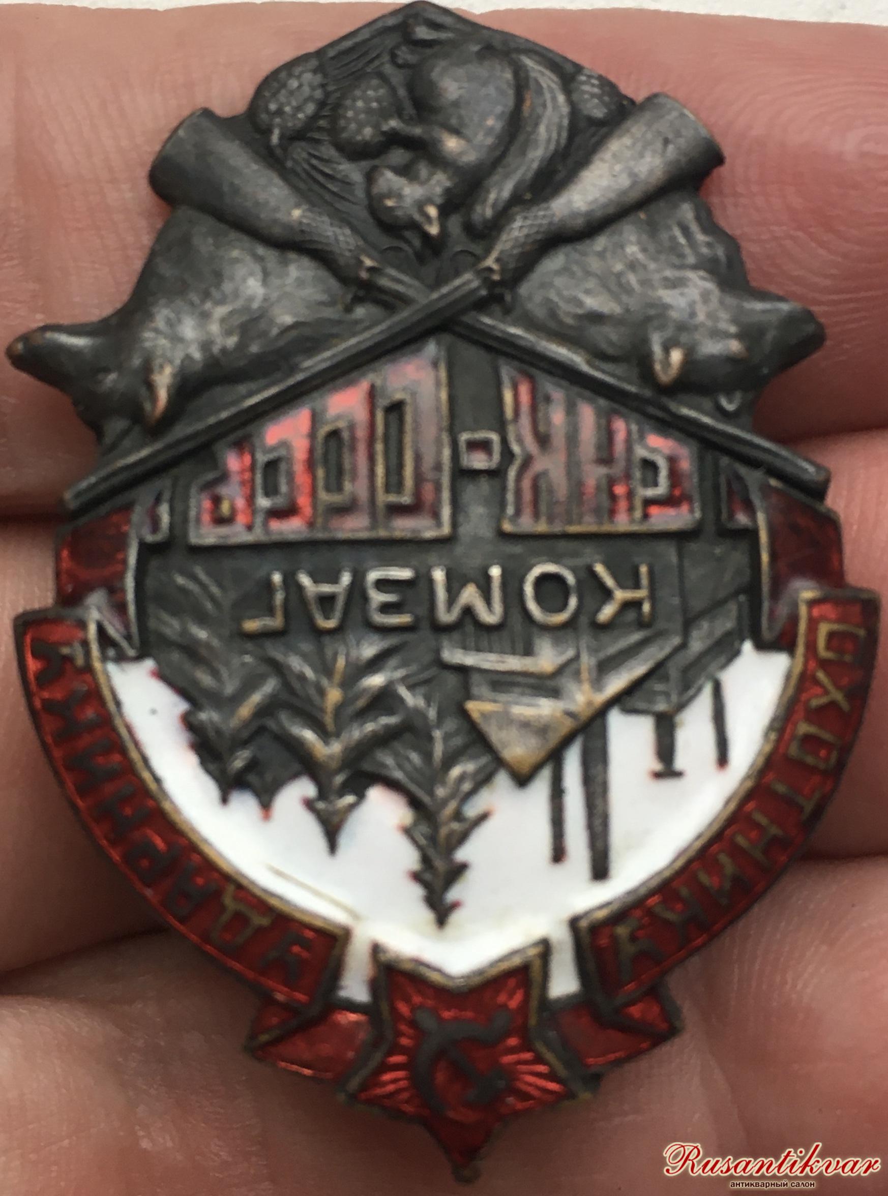 Знак Охотнику-ударнику СНК-СССР, редкий, отличное состояние.