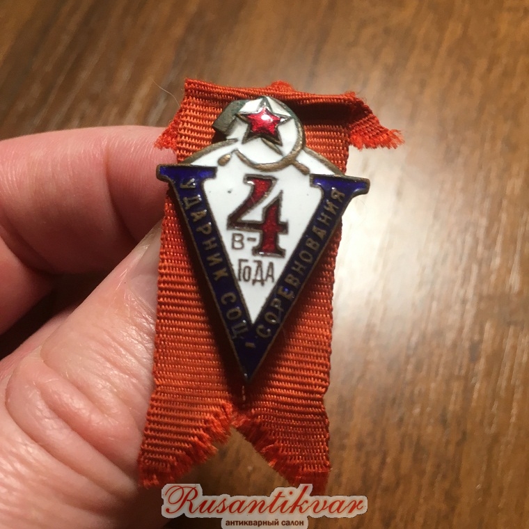Редкий знак Ударнику Соцсоревнования пятилетки в 4года. Отли
