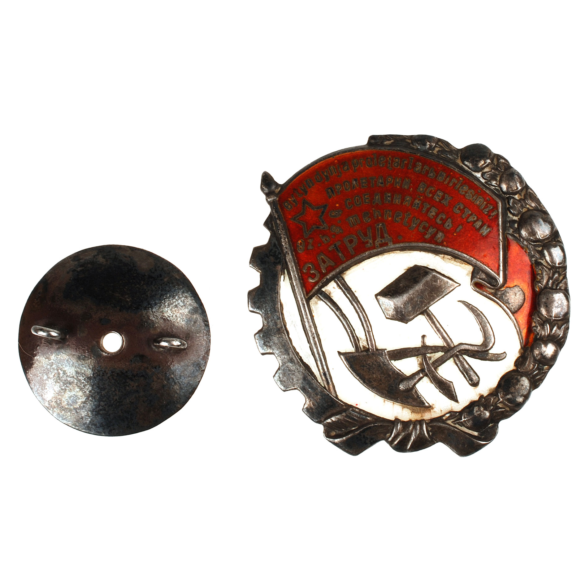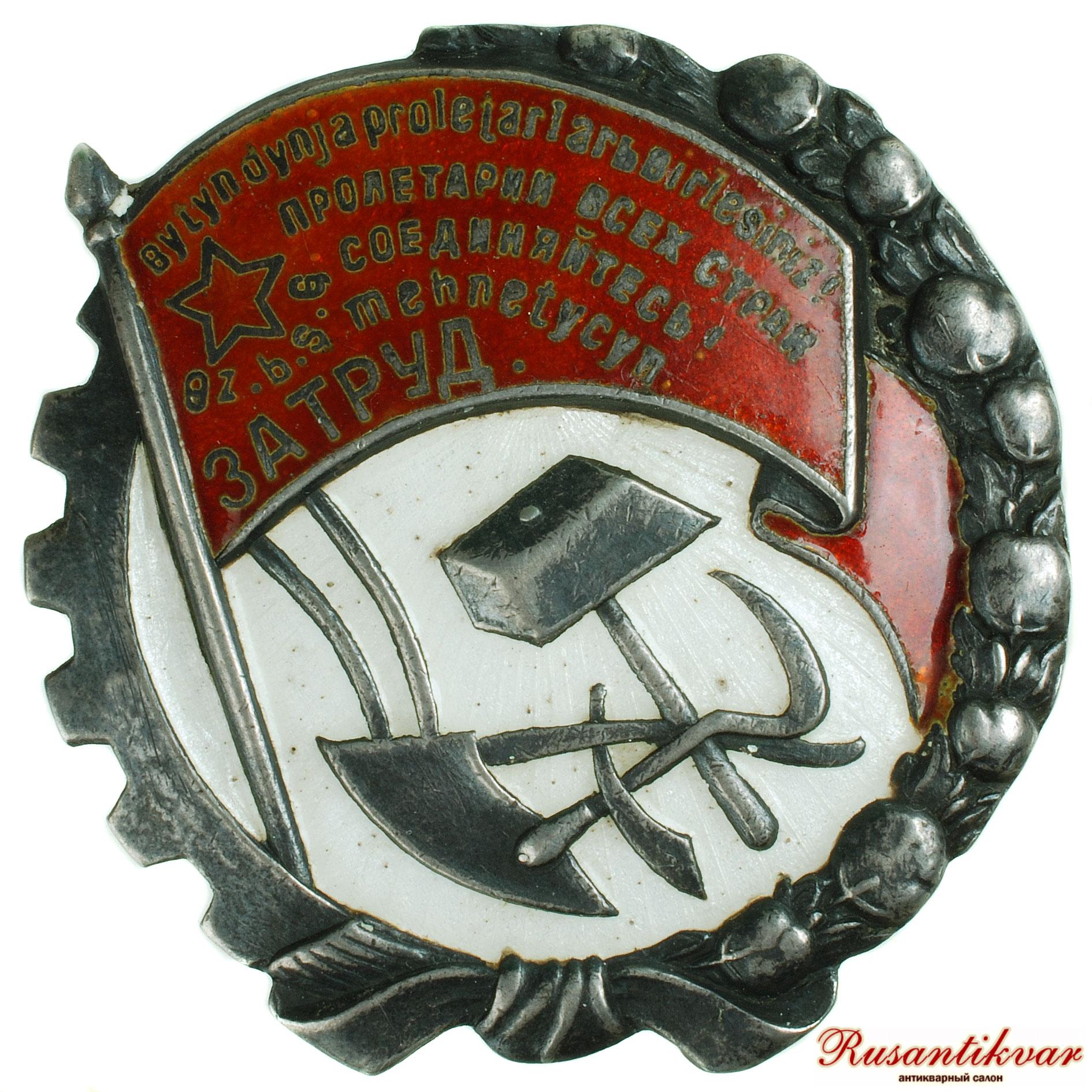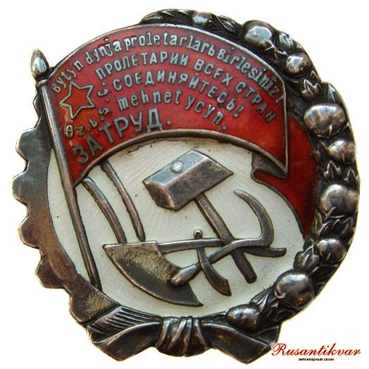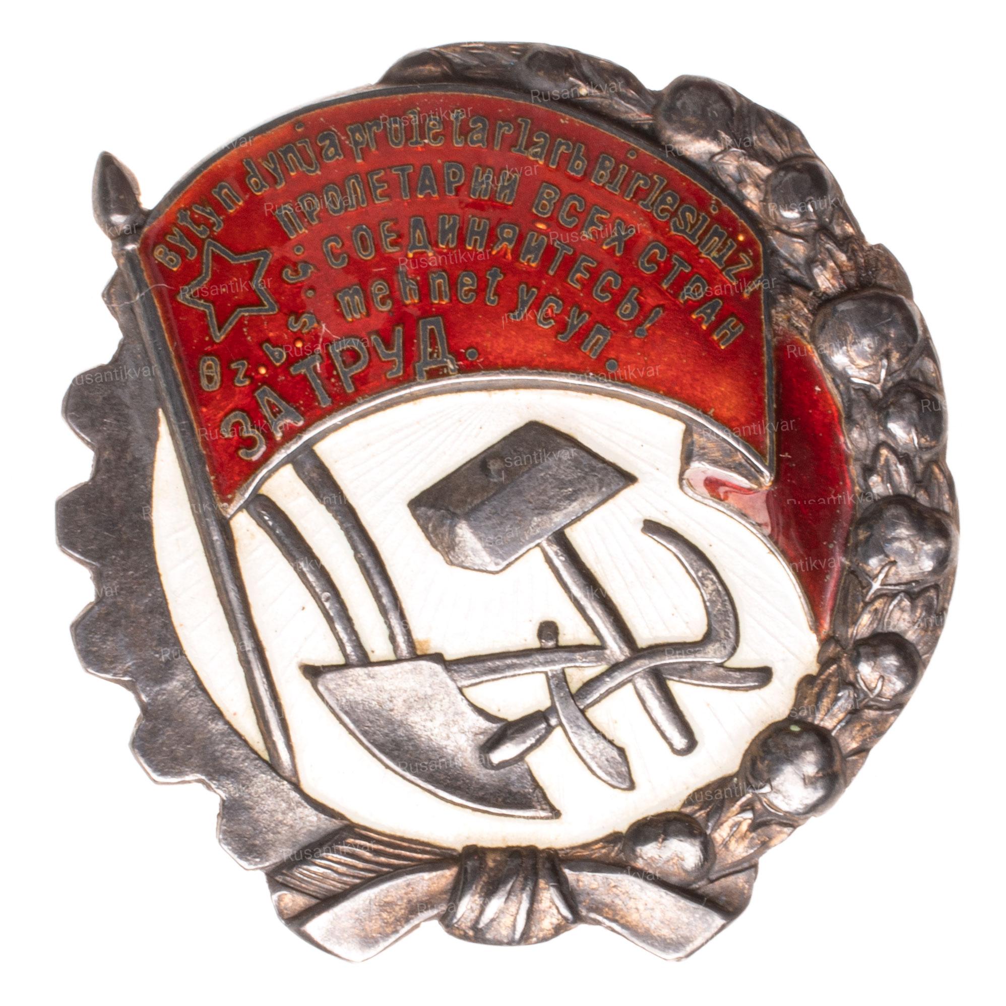 Дважды, 3 января и 20 марта 1926 года Президиум ЦИК Узбекской ССР утверждал предлагаемые Секретариатом изменения внешнего вида орденского знака. В итоге к символике узбекского ордена добавился урак (среднеазиатское сельскохозяйственное орудие ручного труда), а на знамени вместо надписи на узбекском языке «Орден Трудового Красного Знамени» появились два слова на русском языке: «ЗА ТРУД».