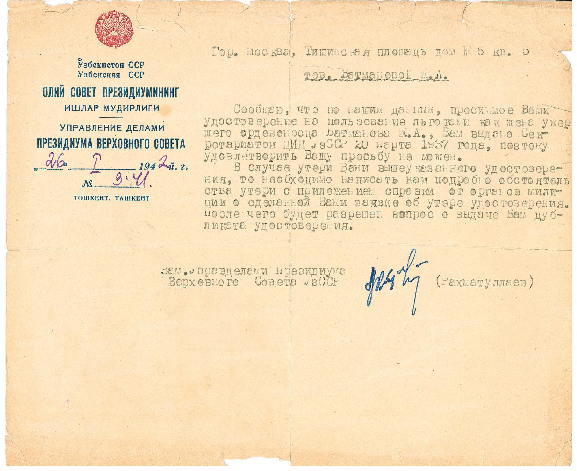 Ордена Трудового Красного Знамени Узбекской ССР №527