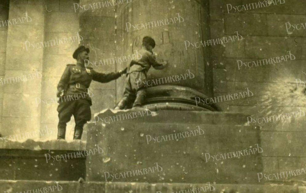 На снимке юный солдат оставляет надпись на стене Рейгстага.