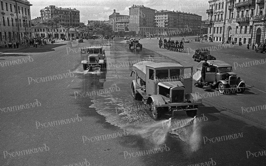 А следом за ними на брусчатку московских улиц вышли поливальные машины. Их не было там с самого начала войны, а теперь помывка улиц стала символическим жестом, показывающим, что с фашисткой заразой покончено навсегда.