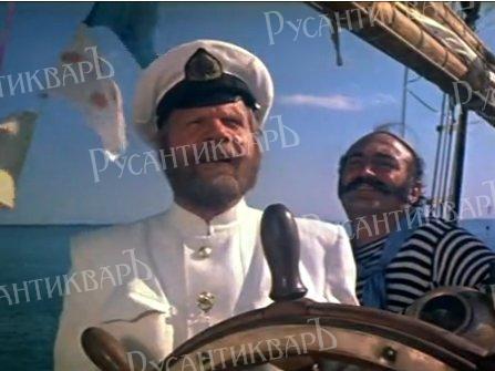 Пуговкин (почётный гражданин Ялты и Крыма, некоторое время проживавший в Ялте) запечатлён в позе, копирующей сцену из фильма «Иван Васильевич меняет профессию» — в режиссёрском кресле и с тростью в руках. Не все знают, что эта сцена снималась именно в Ялте и именно на уже упомянутом пирсе (разумеется, тогда пирс был пустым).