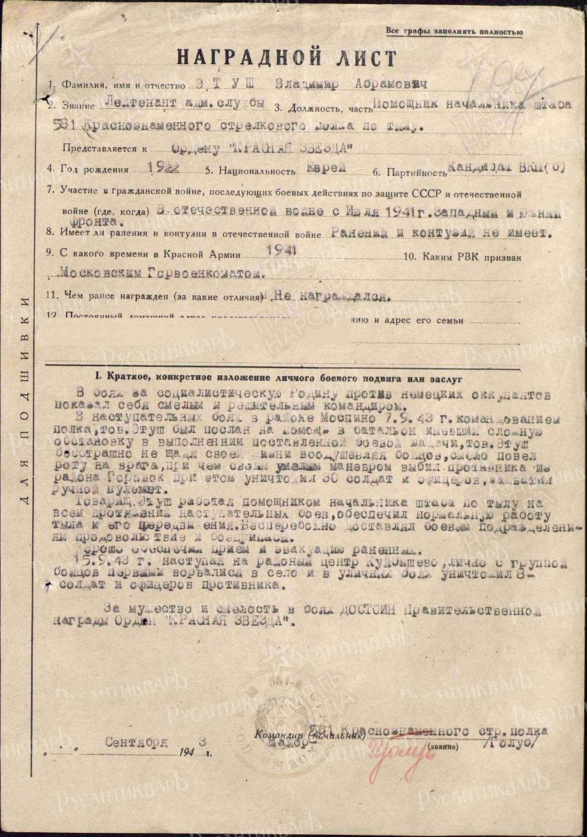 Этуш Владимир Абрамович на фронте.