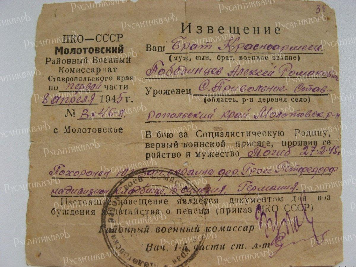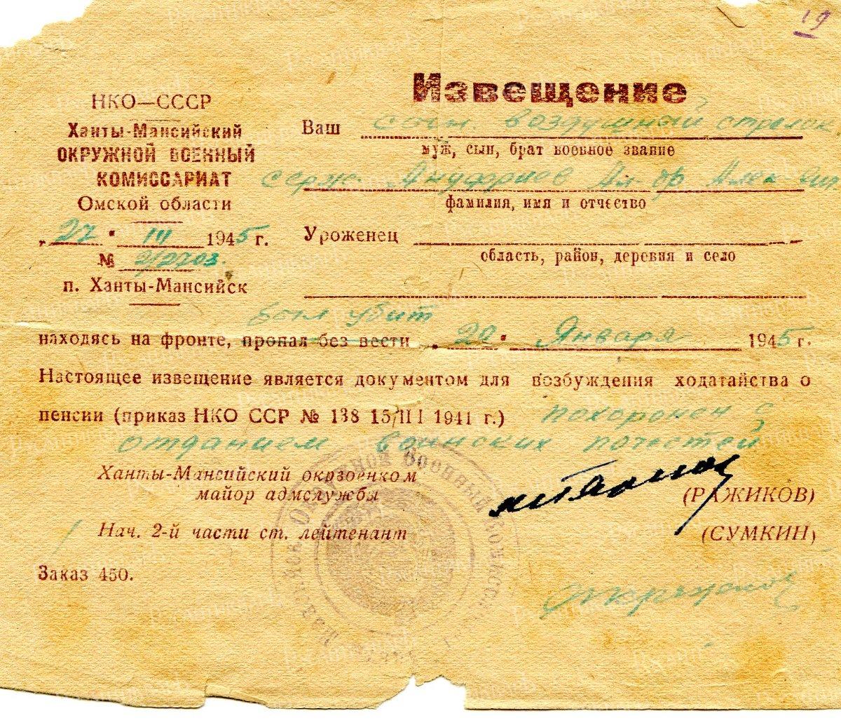 Случалось, что «похоронку» оформляли ошибочно, полагая, что человек погиб.