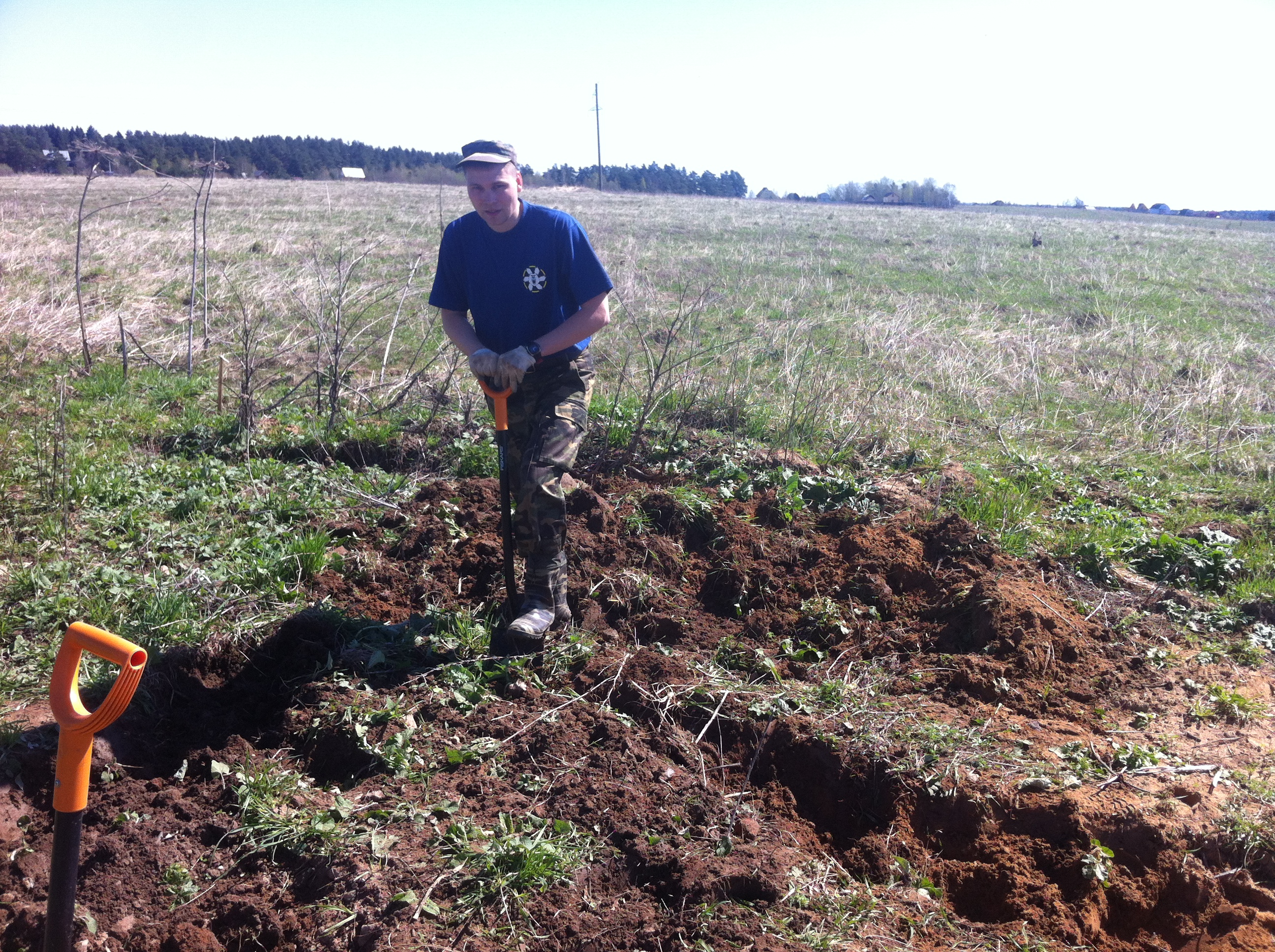 6 мая 2013 года мы провели переговоры с сельской администрацией, а уже 7 мая начали работы по проверке этого места, над которым возвышался свежеизготовленный православный крест с табличкой, призывающей помнить подвиг защитников Отечества.
