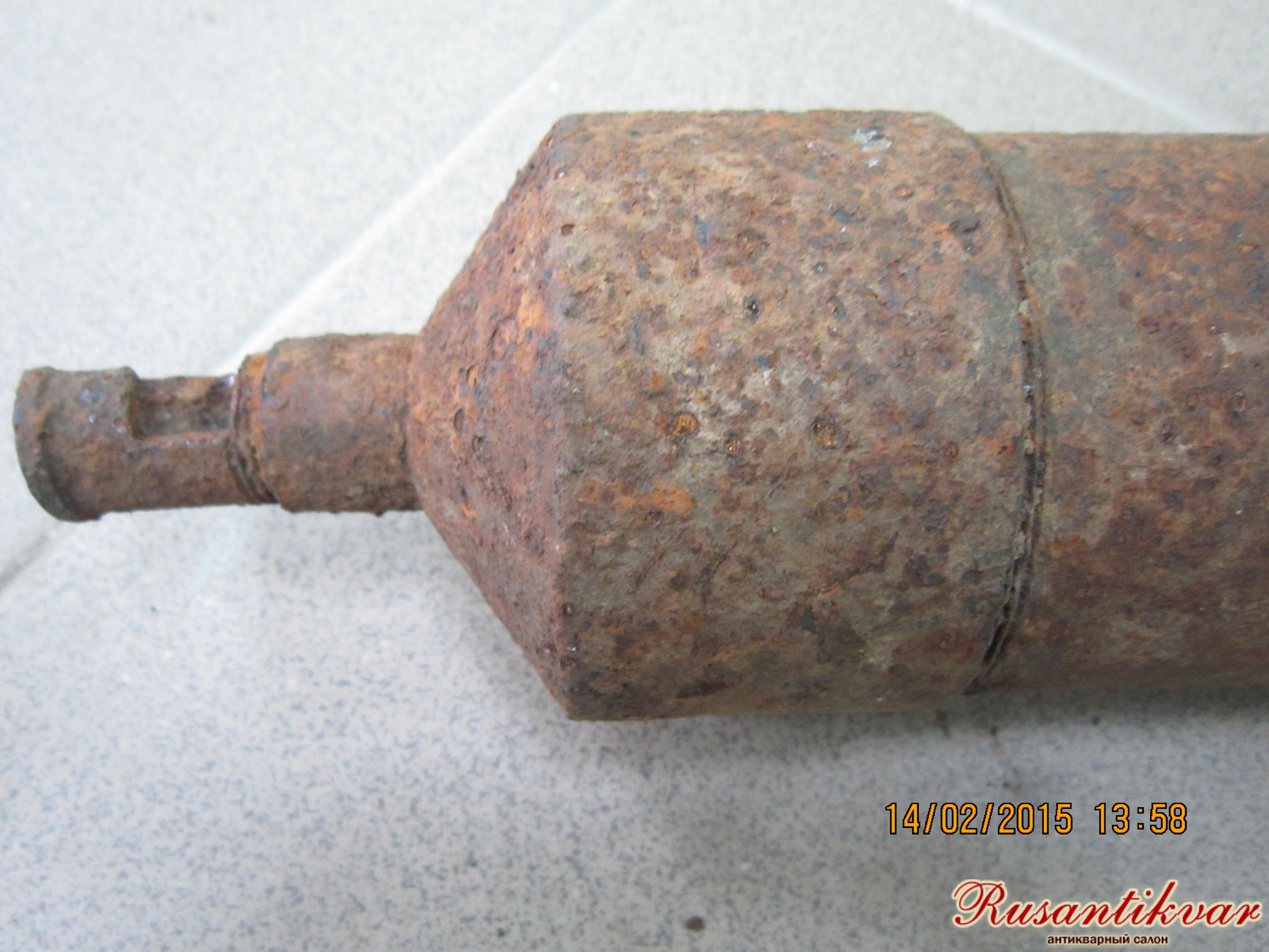 Я впервые видел подобный предмет. Мы атрибутировали его как гранатомёт, надевающийся на ствол мосинской винтовки и действующий от холостого патрона – банка из-под тушёнки свободно входила в цилиндр, правда, что-то очень свободно для производства нормального выстрела.