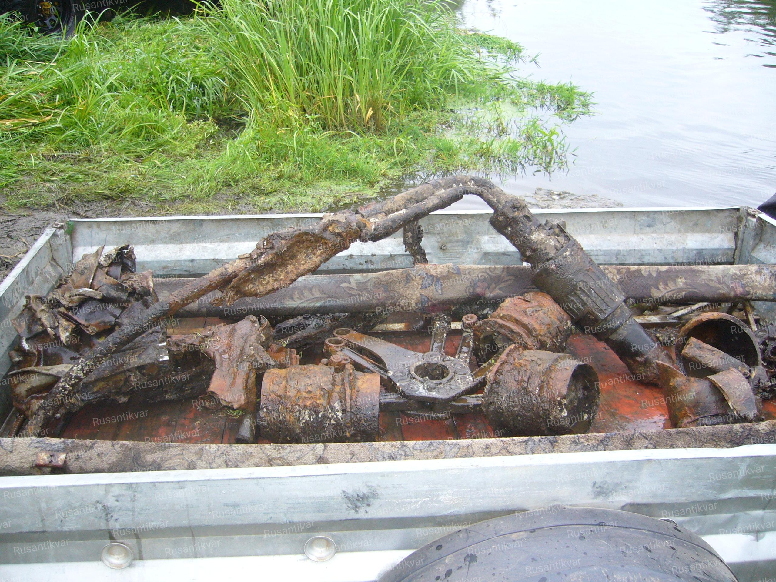 12. Фрагменты самолёта Ла-5, обнаруженные на дне реки Зуша.