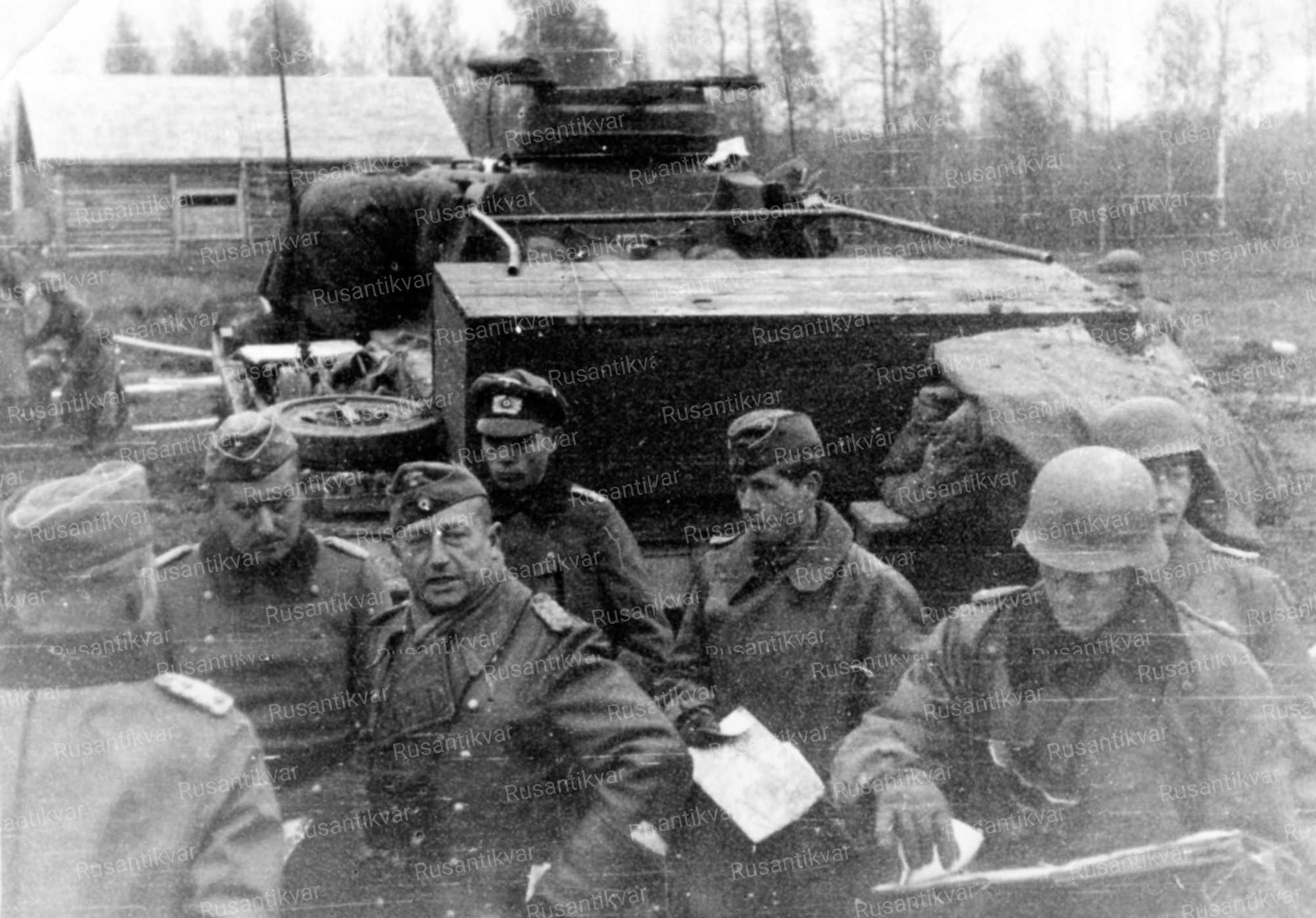 10. Оперативное совещание штаба 10-й танковой дивизии в д. Старое. В центре Вольфган Фишер - командир 10-й танковой дивизии со 2 августа 1941 года. Погиб в Тунисе 1 февраля 1943 года.