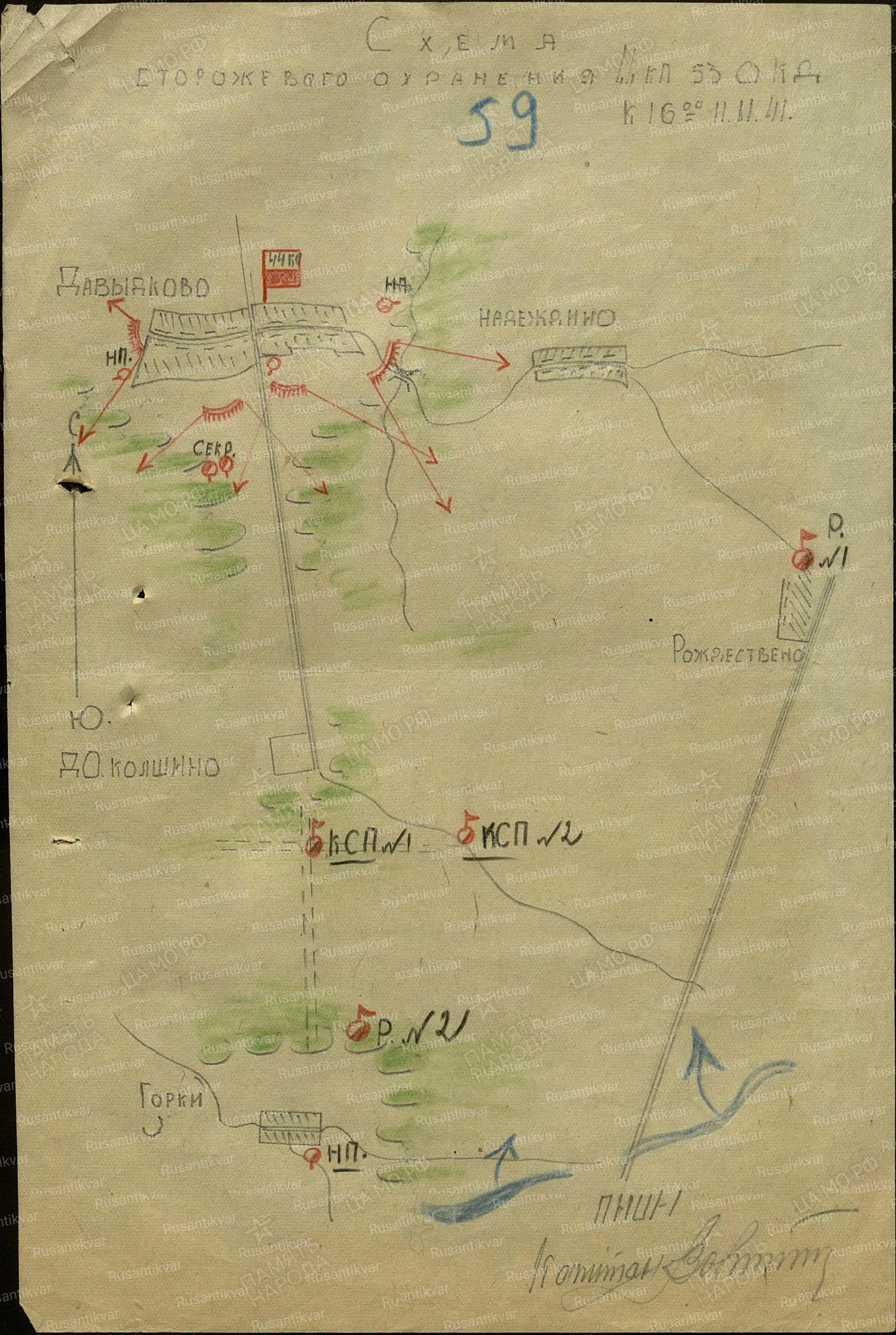 2. Схема сторожевого охранения 44-го кп 53-й кавалеристской дивизии на 11.11.41.