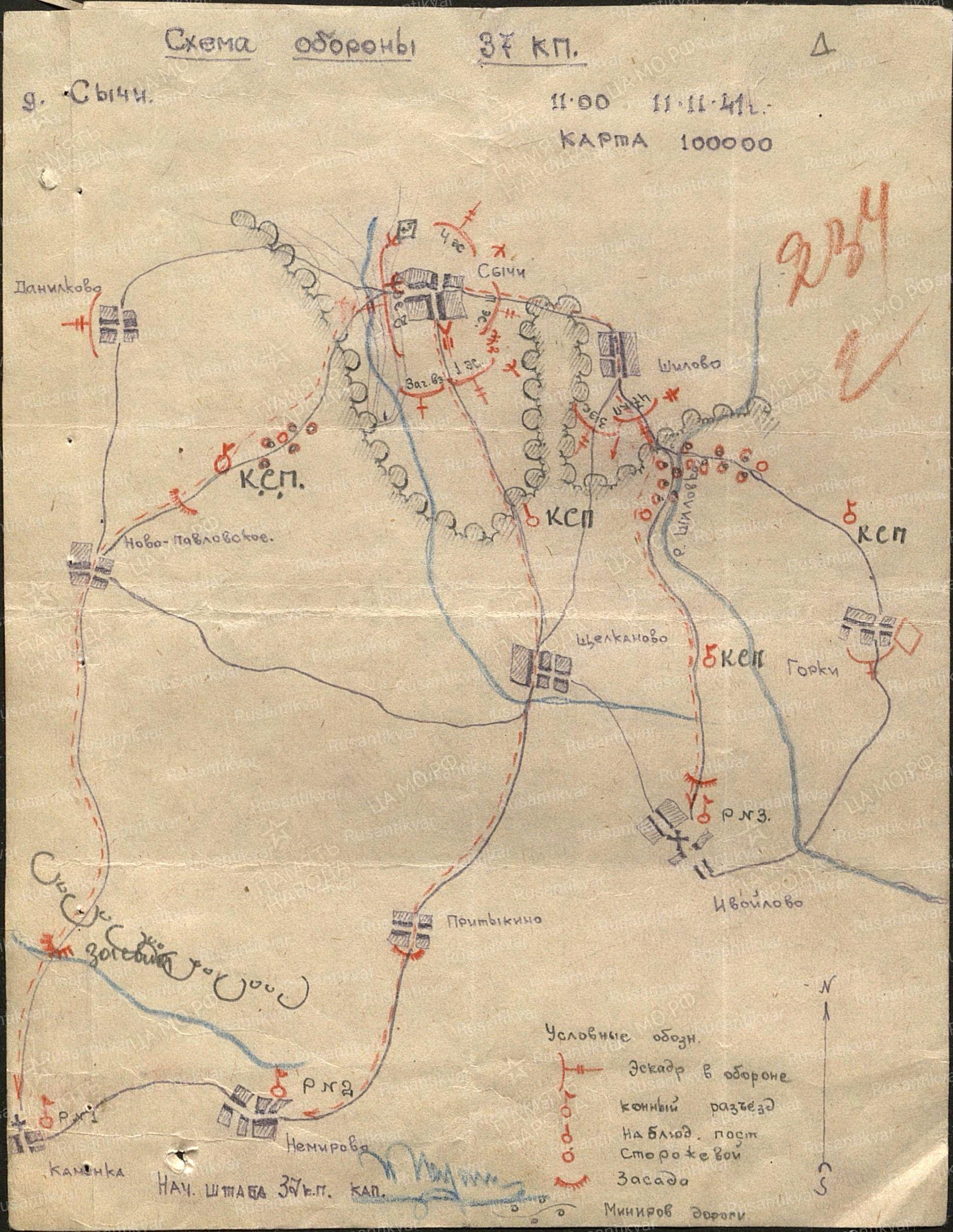 1. Схема обороны 37-го кавалерийского полка 50-й кавалеристской дивизии на 11.11.41.