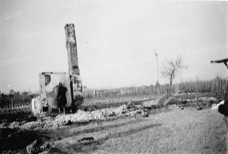 С ней поехала ещё её родная сестра Евдокия с грудным ребёнком. Так я с мамой, старшим братом и сестрой оказались практически в самом пекле войны, а рассчитывали, что война пройдёт мимо. Когда пришли немцы, притеснений не было. Я помню, у дома стоял большой, огромный танк вровень с домом, и какой-то немец подкидывал меня на руках, конфетку дал, помню, мне какую-то. Но желание пробраться в Москву, когда немцы захватили нашу деревню, всё-таки было. Дом наш стоял на самой макушке деревни и через два дня, как пришли немцы, сгорел. Мы остались без ничего. Хотели добраться до Ново-Иерусалима, говорили, что оттуда ещё ходят поезда. Когда мы пошли, неожиданно начался обстрел. Стреляли спереди, сзади, кругом снаряды рвутся, все побежали, шло много народу. Я с матерью остался в конце, она меня за руку держала. Вдруг она упала. Я руку её поднял, а она вся в крови, весь снег в крови, голова у неё в крови. Впереди, в метрах ста, как мне маленькому казалось, у пристройки увидел старшего брата и побежал к нему. Подбегаю – бабушка убитая валяется. Брат меня схватил и в пристройку, посадил за печку. Печка белая, труба высокая. У печки передо мной сидела женщина с маленьким ребёнком. Народу много набилось. Стрельба вроде немножко стихла. Вдруг дверь выламывает пушка и - очередь из пулемёта. Угол печки и женщину с ребёнком прошило так, что даже я в крови был. Убило ещё кого-то. Завопили женщины, дети заплакали, всё же битком набито было, и немецкий танк отъехал. Потом вышли, в поле поймали лошадь с санями без никого, положили мать, бабку и поехали на кладбище к церкви села Рождествено, где их похоронили» [24].