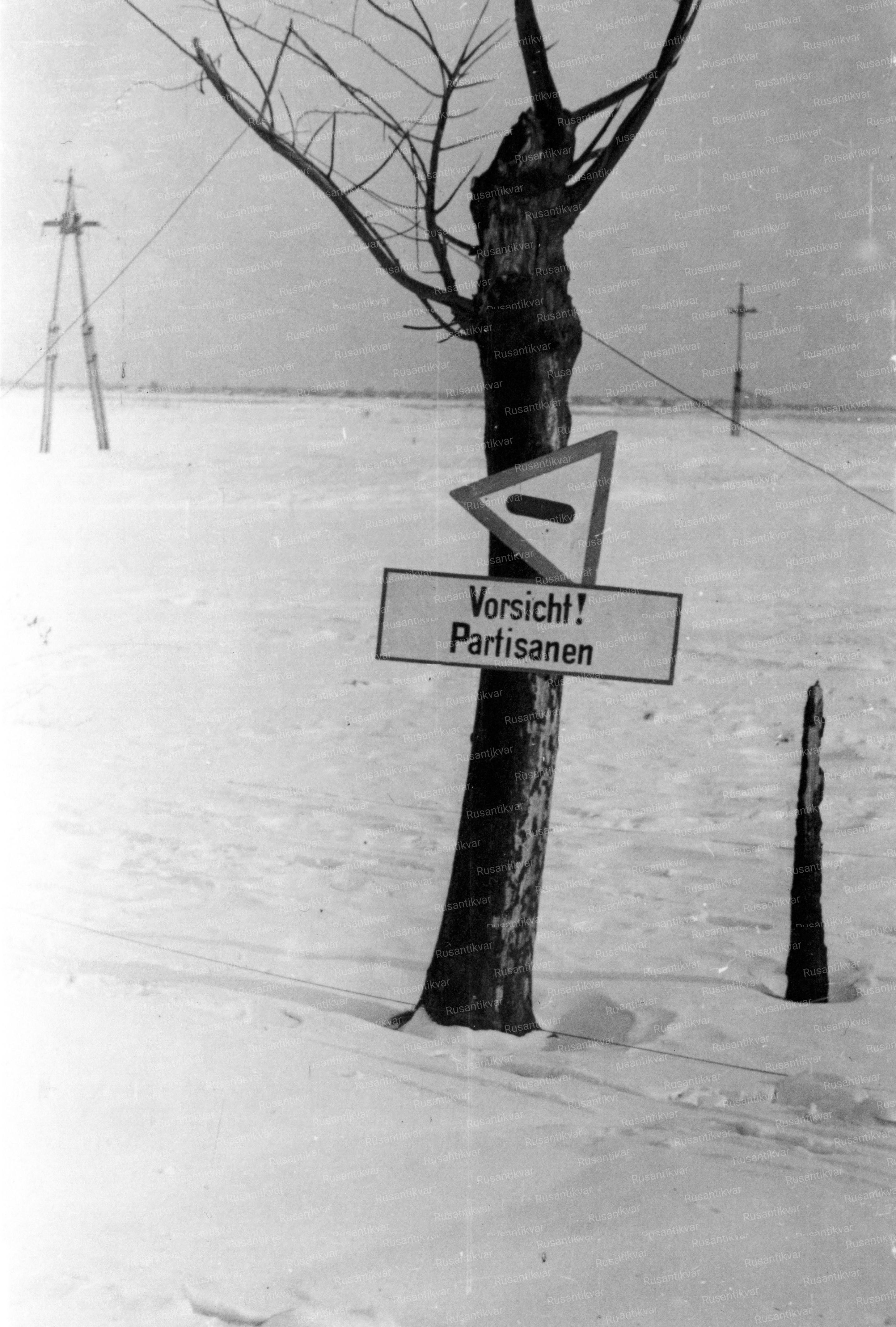 9. Немецкий предупреждающий указатель «Осторожно! Партизаны».