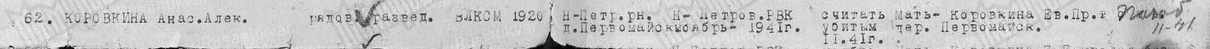 Запись о Коровкиной Анастасии Александровне в ОБД "Мемориал".
