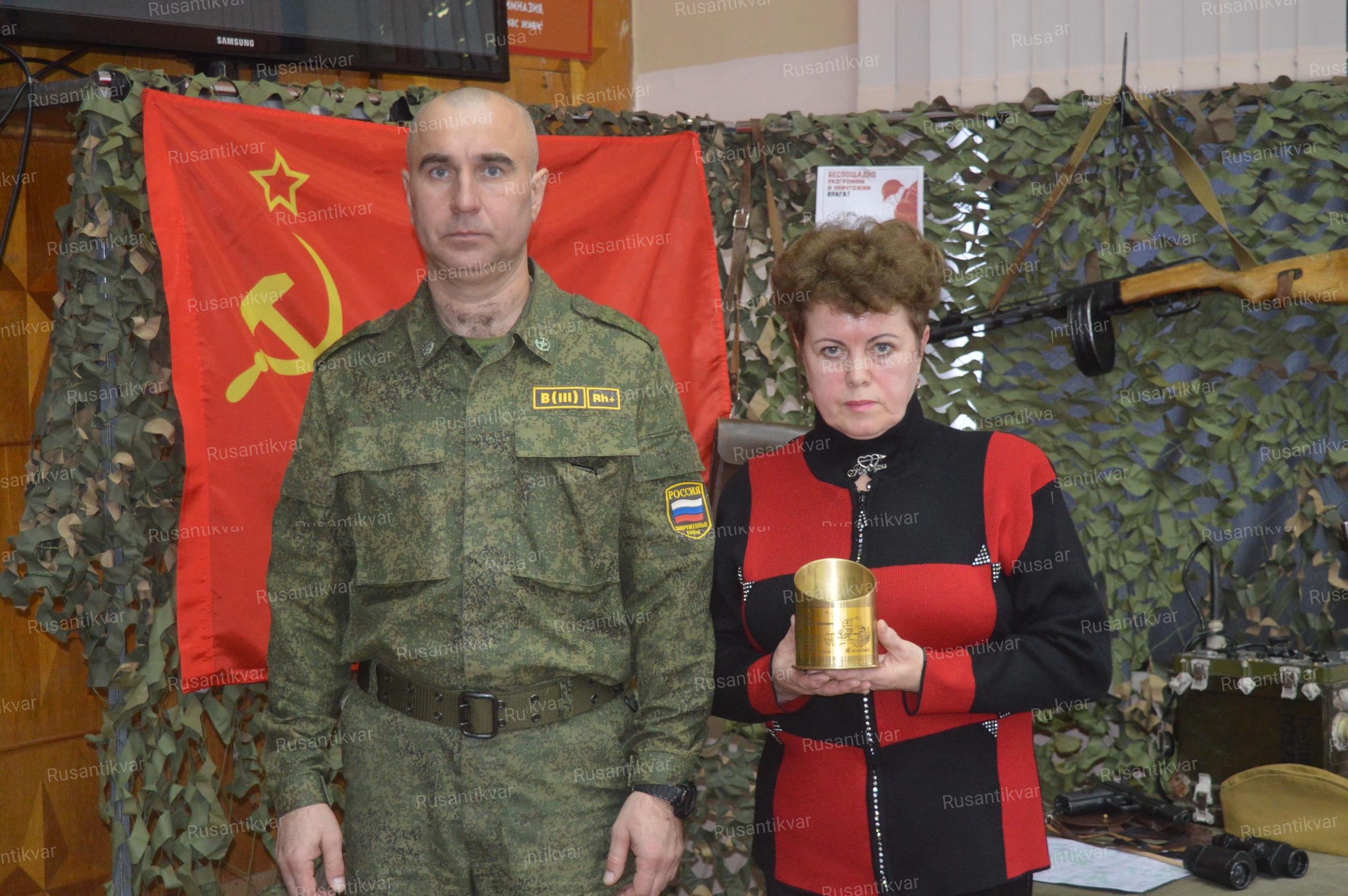 Фото 8. Передача кисета Дашиной Татьяне Ивановне, племяннице Клёмина Д. П.