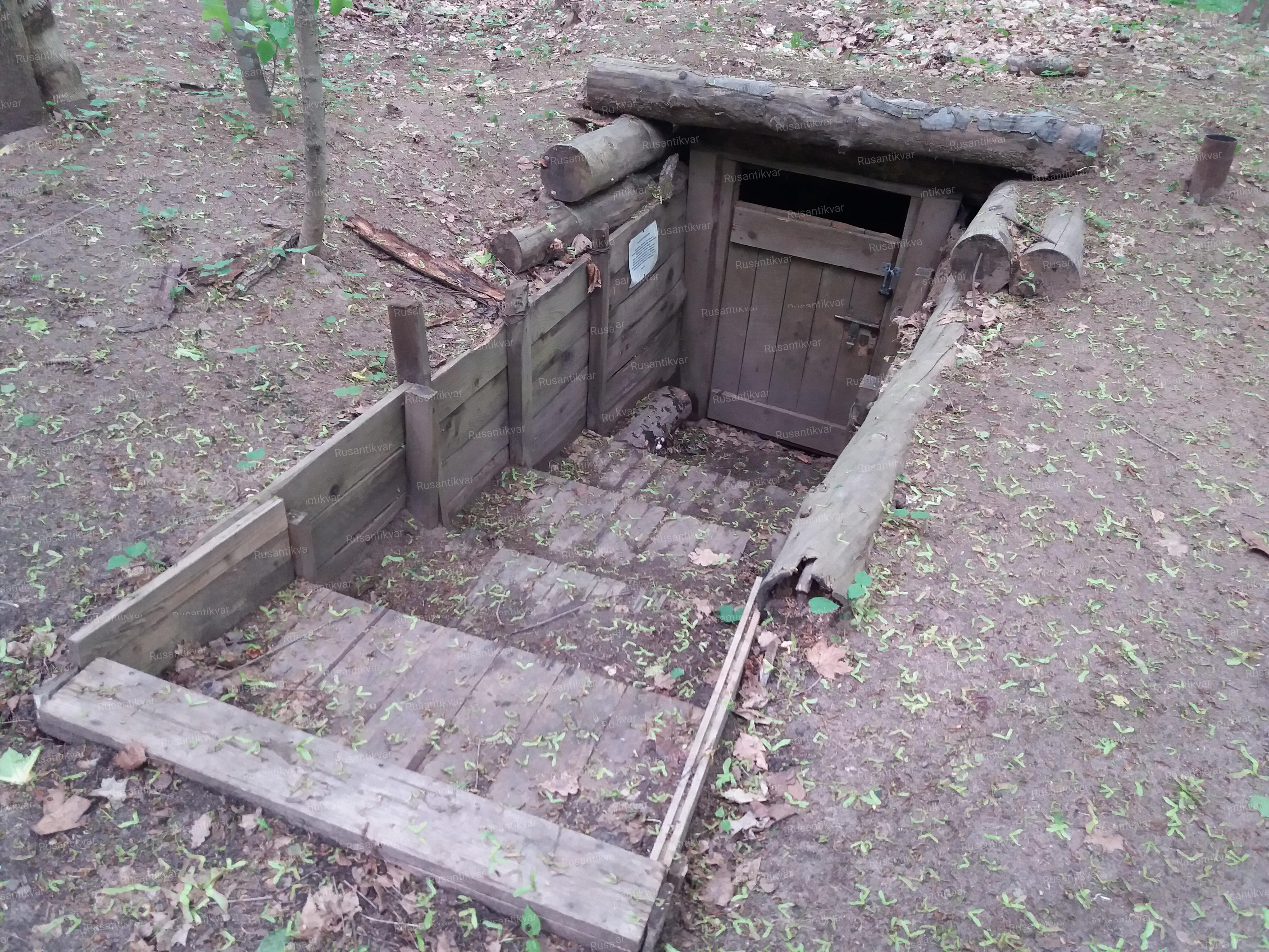 • Илл. 11. д. Дунино. Вход в блиндаж военного времени. Реконструкция. Вид с северо-востока. Фото автора, 2019 г.