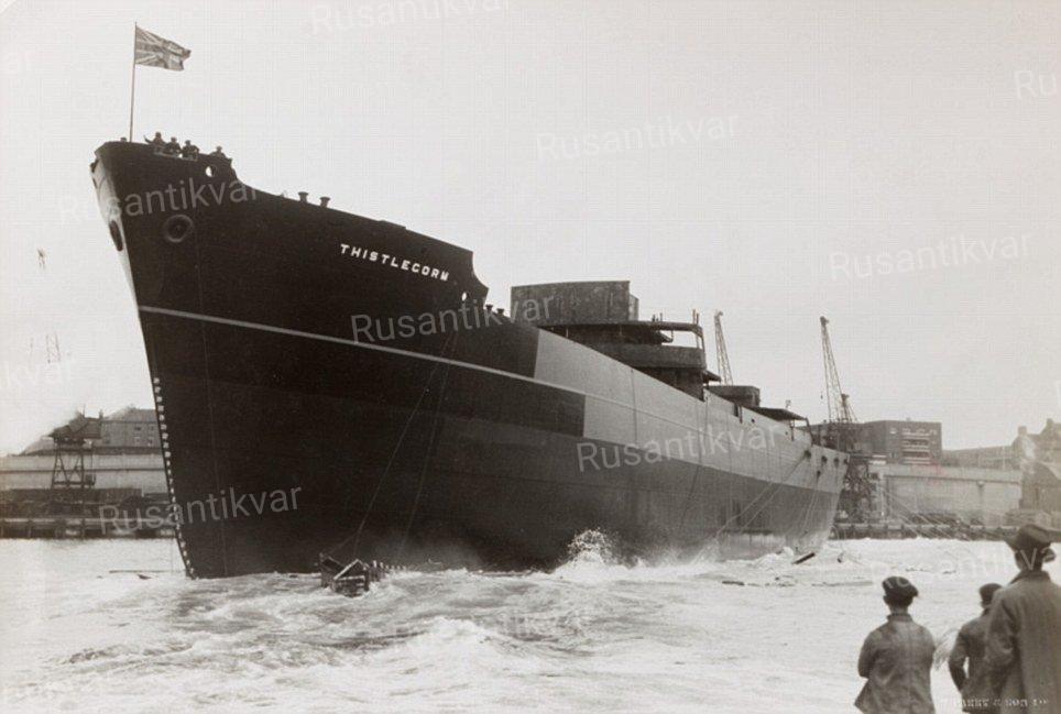 «Тистлегорм» (в переводе с галльского означает «Голубой чертополох») был спущен на воду 9 апреля 1940 года в Сандерленде, Англия. Его длина составляла 126 м, а грузоподъемность – 5000 т, скорость – 10 узлов. Использовались паровые котлы на угольном топливе. Построенный на корабельных верфях «Томсон и сыновья», корабль был приобретён компанией «Албин Лайн ЛТД». Судно было зарегистрировано страховым агентством «Ллойд» как одно из ста первоклассных судов. По причине военного времени корабль был вооружён пушкой калибра 35 мм, крупнокалиберной зенитной пушкой и тяжелым пулемётом. Первое плавание судно совершило к берегам Северной Америки с грузом запасных деталей для самолётов. Второй рейс был к берегам Индии, а третий — в Аргентину. Четвёртое задание оказалось для «Тистлегорма» трагическим и последним. В листке назначения значилось Красное море. Выйдя в первую неделю сентября из Глазго, после короткой остановки в Кейптауне для пополнения запасов угля, «Тистлегорм» взял курс на северо-восток. Проплыв всё Красное море, корабль достиг пролива Гобал, где в ночь с 5 на 6 октября 1941 года при полной луне подвергся атаке немецкой авиации и затонул. «Тистлегорм» был атакован бомбардировщиками «Хенкель Не-111», базировавшимися на острове Крит и проводившими разведку вдоль Синайского побережья. После световой атаки, немецким пилотам не составило труда найти цель, так как весь караван, состоявший примерно из 20 судов, располагался достаточно скученно.