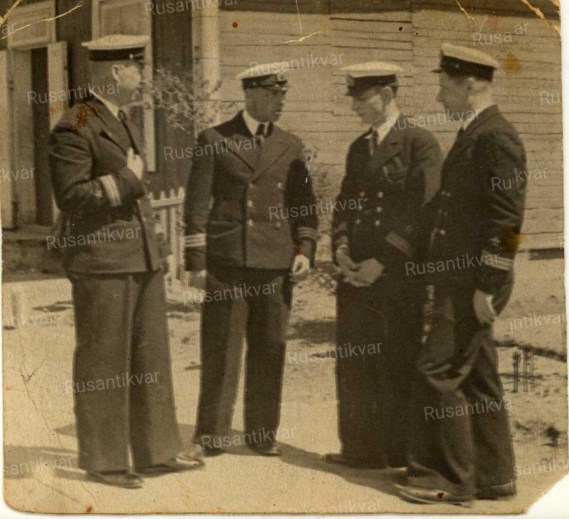 9 - Слева направо: Новиков Николай Иванович старший политрук начальник Военно-Морского клуба ПВФ, Баст Е.З. капитан 3 ранга командир дивизиона мониторов ПВФ, Максименко Климентий Васильевич капитан-лейтенант начальник 1-го отделения ОРСО штаба ПВФ, Рославцев Дмитрий Васильевич старший политрук зам. редактора газеты ПВФ "На боевой вахте". Пинский военный порт, май 1941 года (фото из семейного архива Баст М.В.) - уникальное фото;