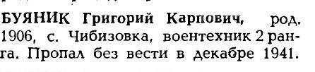 Рассмотрим первую из 17 страниц фамилий (Илл. 2). В первую очередь обращаем внимание на тех бойцов, у кого есть данные в колонке «Дата выбытия» - это значит, что человек погиб в плену, а не просто попал туда (хотя и здесь встречаются свои исключения). В данном конкретном случае это Буянин, Хаев, Сорокин, Боголюбский и Левстанов. Первый же из них – Буянин Григорий Карпович, - если проверить конкретно его через все тот же ОБД, в приказе об исключении из списков проходит как пропавший без вести (Илл. 3), а во втором томе Книги Памяти Тамбовской области присутствует с ошибкой в фамилии – Буяник – и тоже как пропавший без вести (Илл. 4). Чтоб обнаружить его в Книге Памяти, пришлось сформулировать запрос так: Григорий Карпович 1906. Если бы Григориев Карповичей 1906 года рождения оказалось слишком много, можно было добавить в поисковую строку место его рождения - тамбов* (звездочка обозначает поиск со свободным окончанием, т.е. ОБД выдаст вам как уроженцев г. Тамбова, так и Тамбовской области). В ходе работы обнаруживается, что в документах военнопленных Григорий Карпович Буянин проходит дважды – и в документах 52-го офлага и в документах офлага XIII D (62). Впрочем, обратившись к помощи Яндекса, обнаруживаем, что это одно и то же место - «Хаммельбург (1941 — 1945) — концентрационный лагерь на территории Германии, предназначенный для содержания пленных офицеров Красной Армии. Обозначение Oflag-XIII D (в дальнейшем после снятия карантина Oflag 62). Располагался на территории полигона Хаммельбург в Нижней Франкии к северу от Вюрцбурга». В любом случае, немецкий документ с пометками нашего переводчика дает однозначный ответ на вопрос о месте захоронения – новое кладбище Хаммельбург, могила 51 (Илл. 5). ИЛЛ 3,4,5