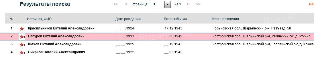 2. Можно идти от конкретного места рождения или призыва. Самый доступный для начинающего работать в этой области способ – открыть тот же самый ОБД, найти в нем Книгу Памяти своего региона (если под рукой нет бумажного экземпляра), отметить себе всех уроженцев какого-нибудь сельсовета, до сих пор числящихся пропавшими без вести и по очереди «пробить» их через интернет.