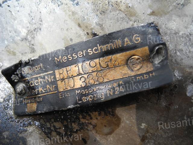 На найденной табличке кроме заводского номера самолета было обозначено и место выпуска – в переводе с немецкого: «Машино-строительный завод Эрла, Лейпциг». Этим заводом в 1942 году выпускалось по 2-3 самолета в день. Обратим внимание на то, что истребитель Bf 109 G-2 с близким номером «10390» был выпущен заводом Erla 30.06.1942 и направлен на фронт в 2./JG54 и зимой того же года в качестве трофея попал в руки красноармейцев под Сталинградом .