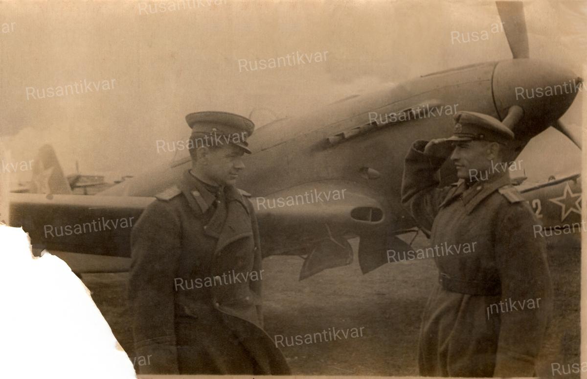 Авиамеханик 2 АЭ старшина Шепелев докладывает зам. командира АЭ ст. лейтенанту Сафонову о готовности самолета Як-3 к вылету. Апрель 1945 года - надпись на обороте фотографии.