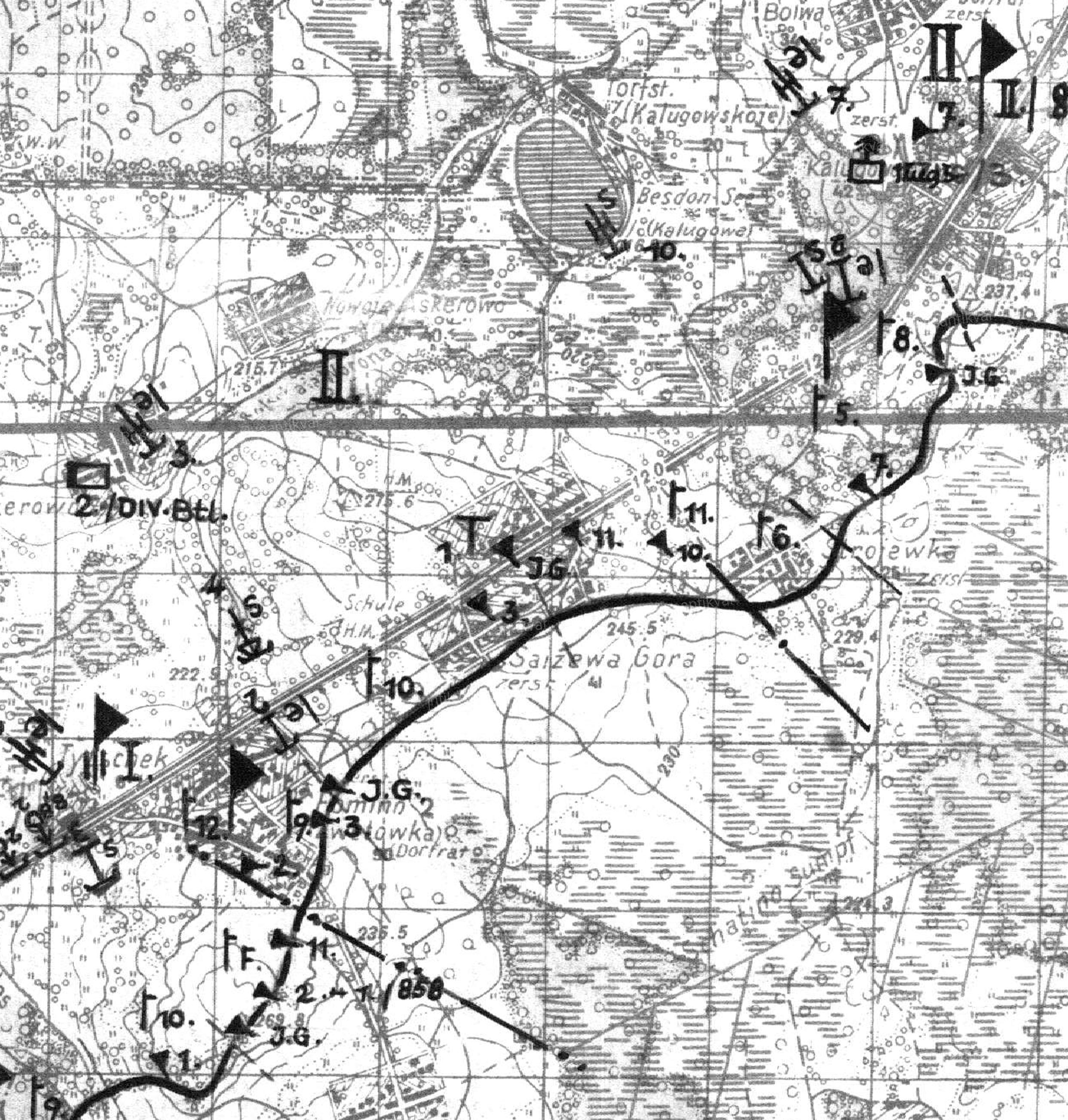 Теперь, надеемся, читателю стало понятно, так же, как и командованию немецкой дивизии, что нахождение под носом у себя русского опорного пункта может привести к печальным последствиям. Поэтому германским командованием была разработана и проведена операция «Зигфрид».