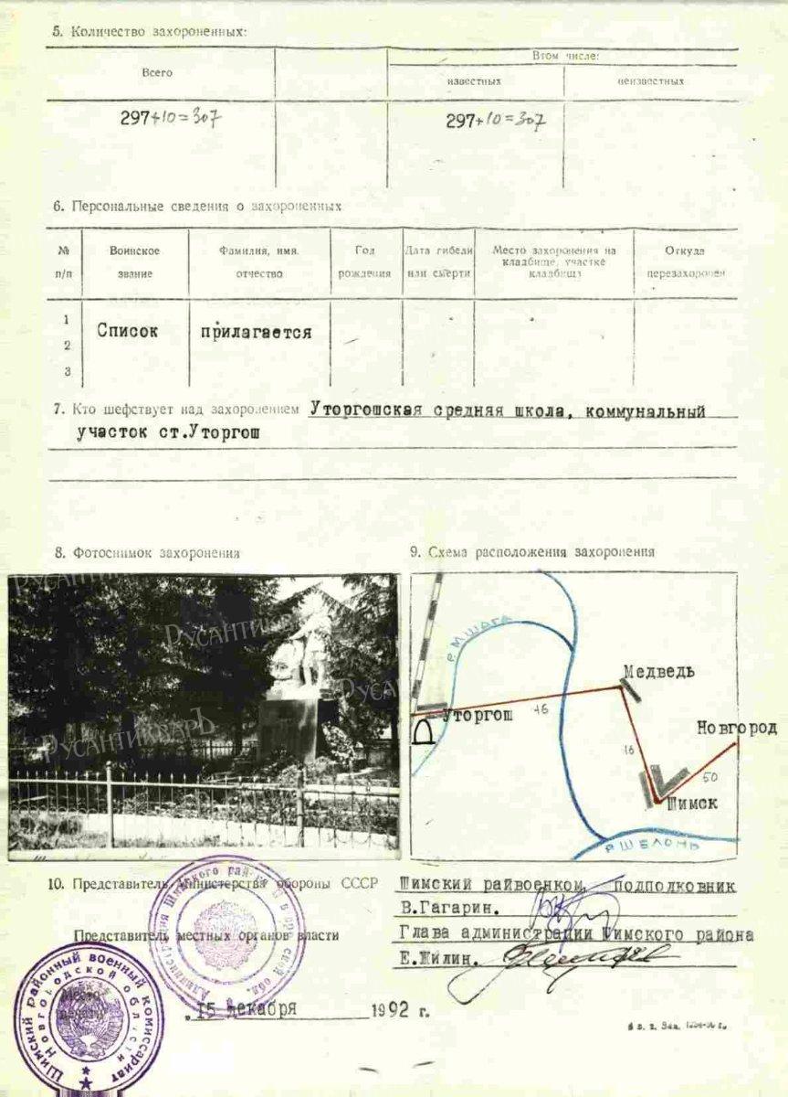 20. Карточка захоронения Георгия Урусова.