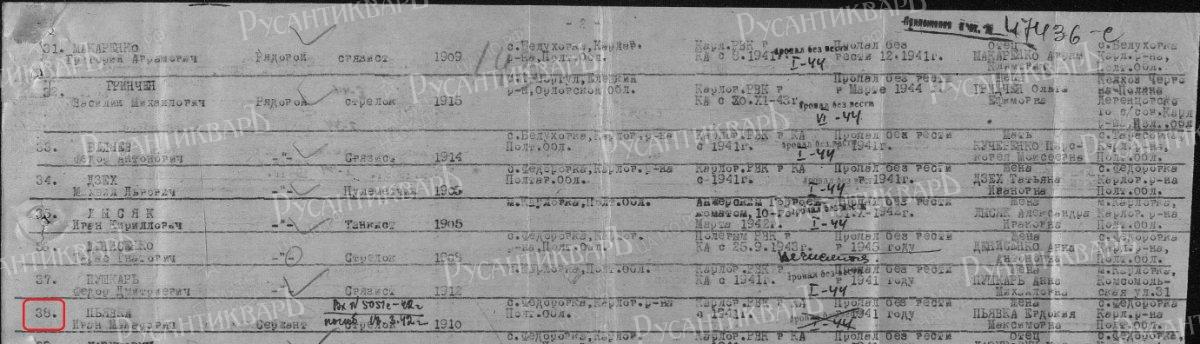 Война закончилась. И, спустя два года, 23.06.1947 года Карловский РВК Полтавской области, тот райвоенкомат, откуда призывался И.М. Пьявка, направляет именной список безвозвратных потерь по району в адрес начальника управления по учету погибшего и пропавшего без вести рядового и сержантского состава. В нём Иван Макарович значится как пропавший без вести в 1941 году. Его разыскивает жена Евдокия Максимовна, проживающая в с. Федоровке Карловского района.